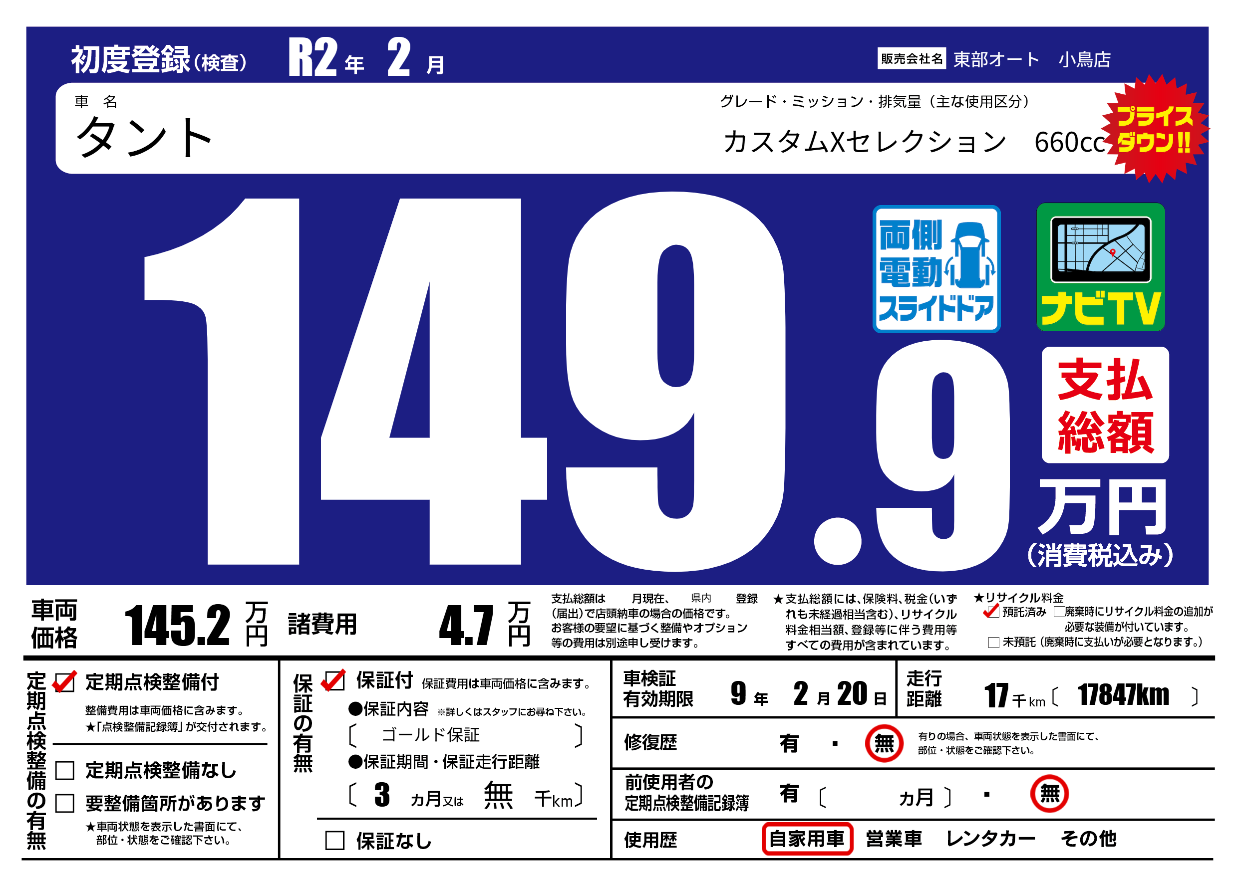 保証付き 保証内容( ゴールド保証) 3ヶ月または(無)千kmまで |