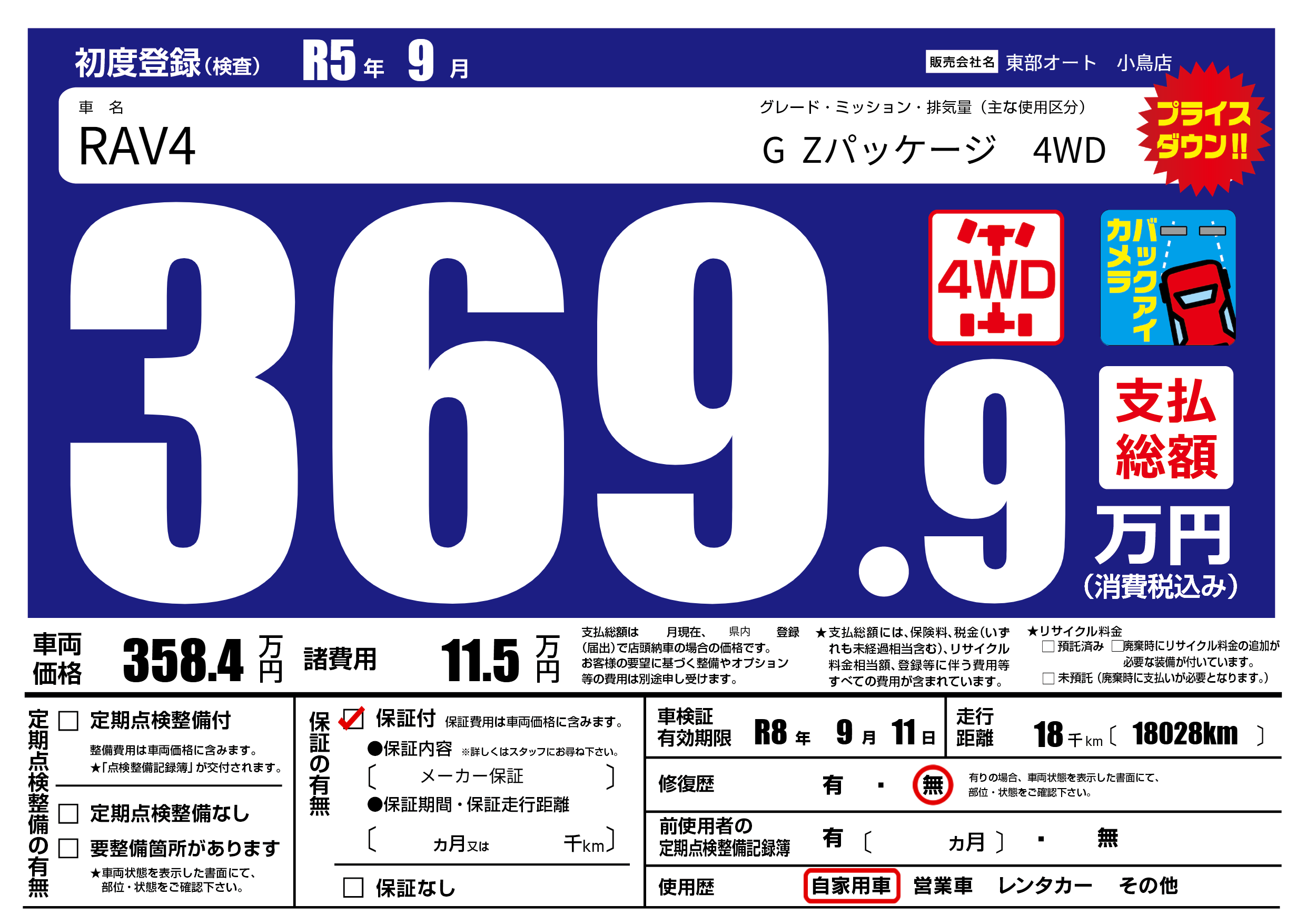 | 車名 | RAV4 | グレード ミッション 排気量 |