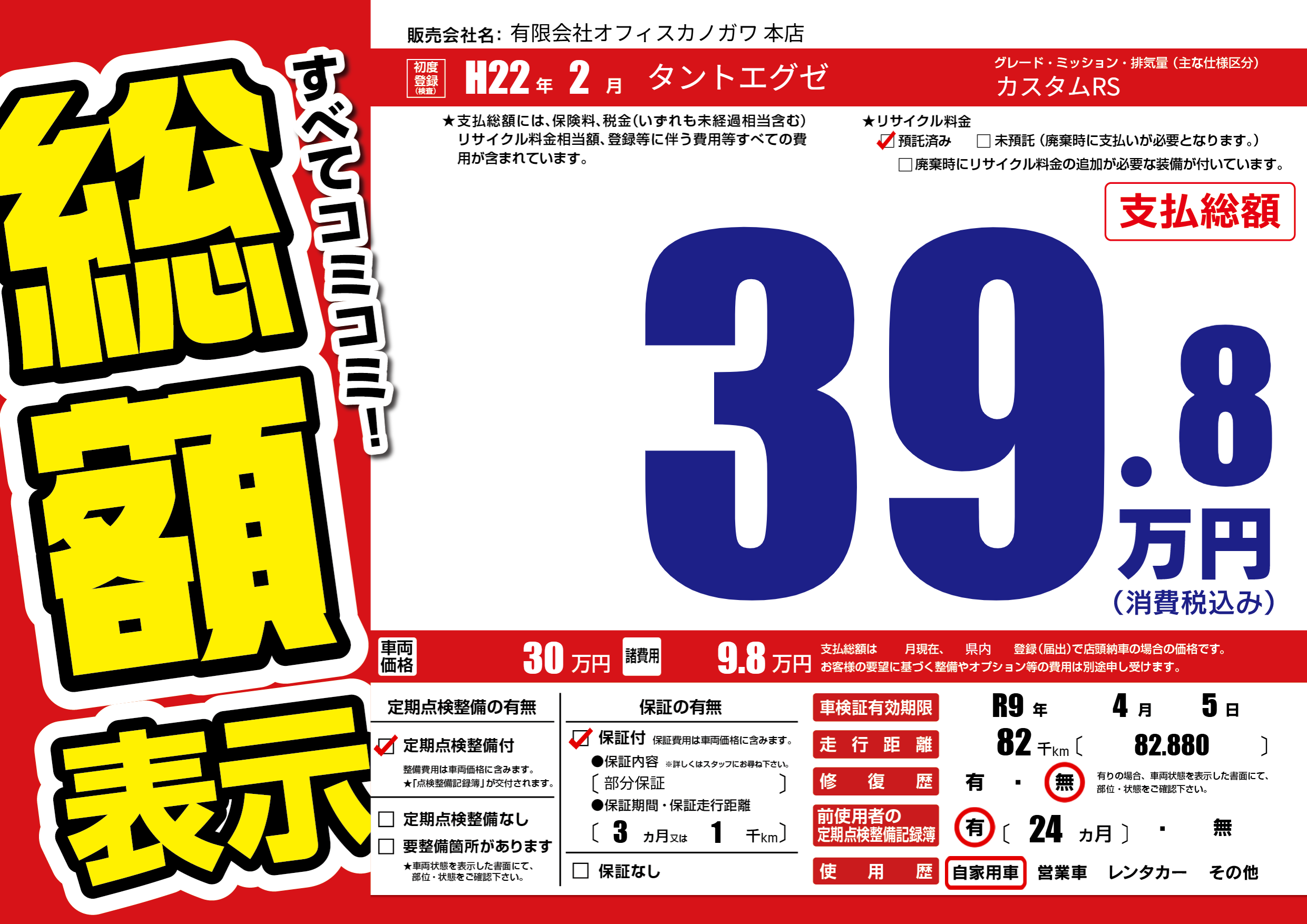 なし | 車検制限 | R9年4月5月 |