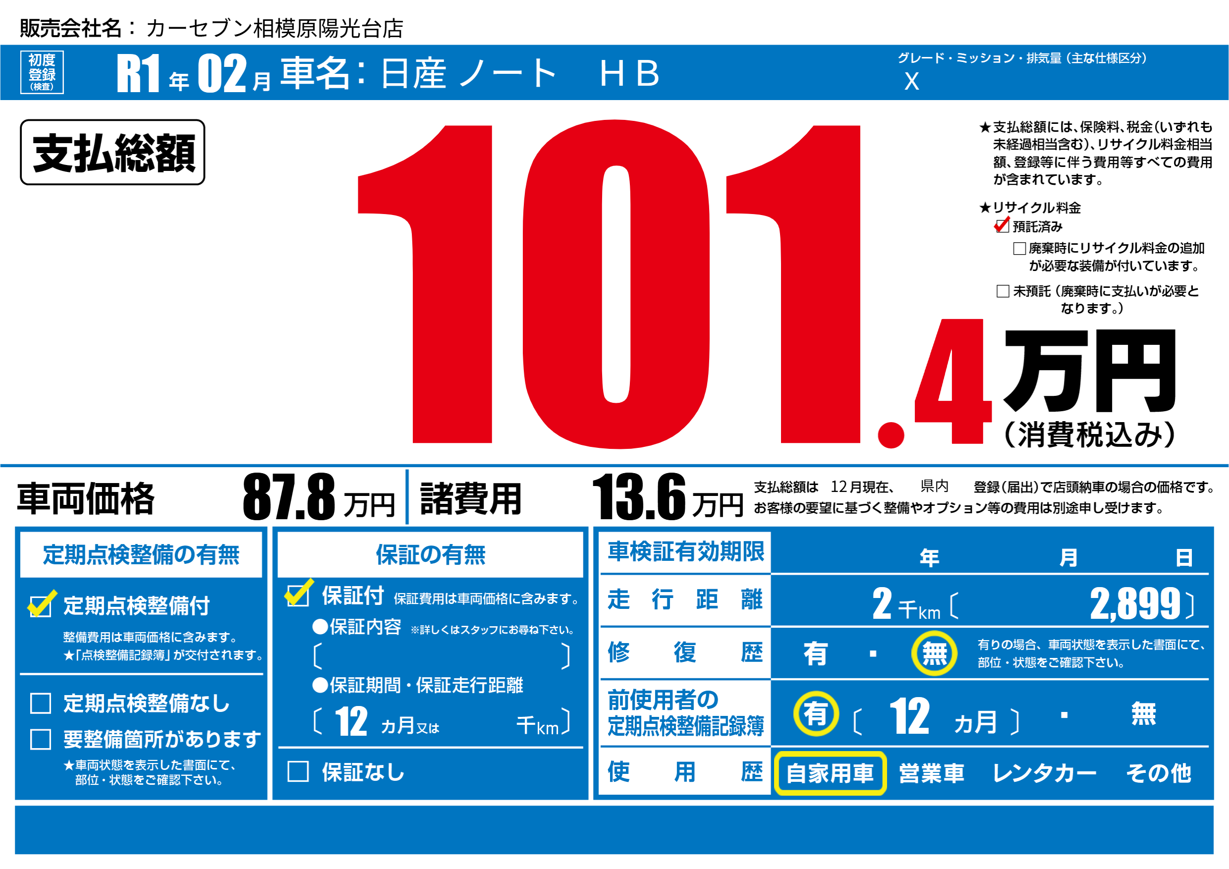 | 定期点検整備 | 定期点検整備あり | ||