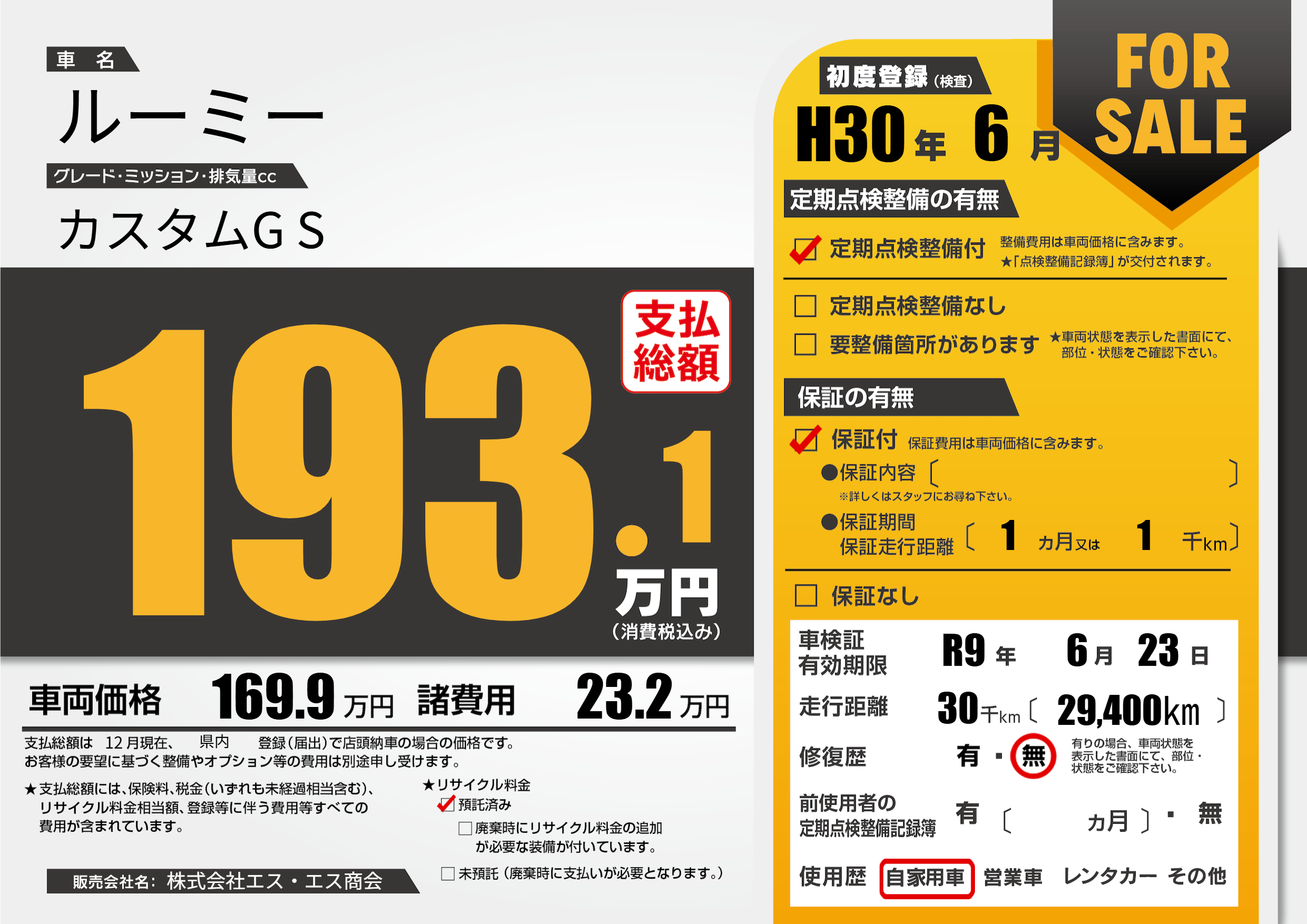 | 車検制限 | R9年 6月 23日 | ||