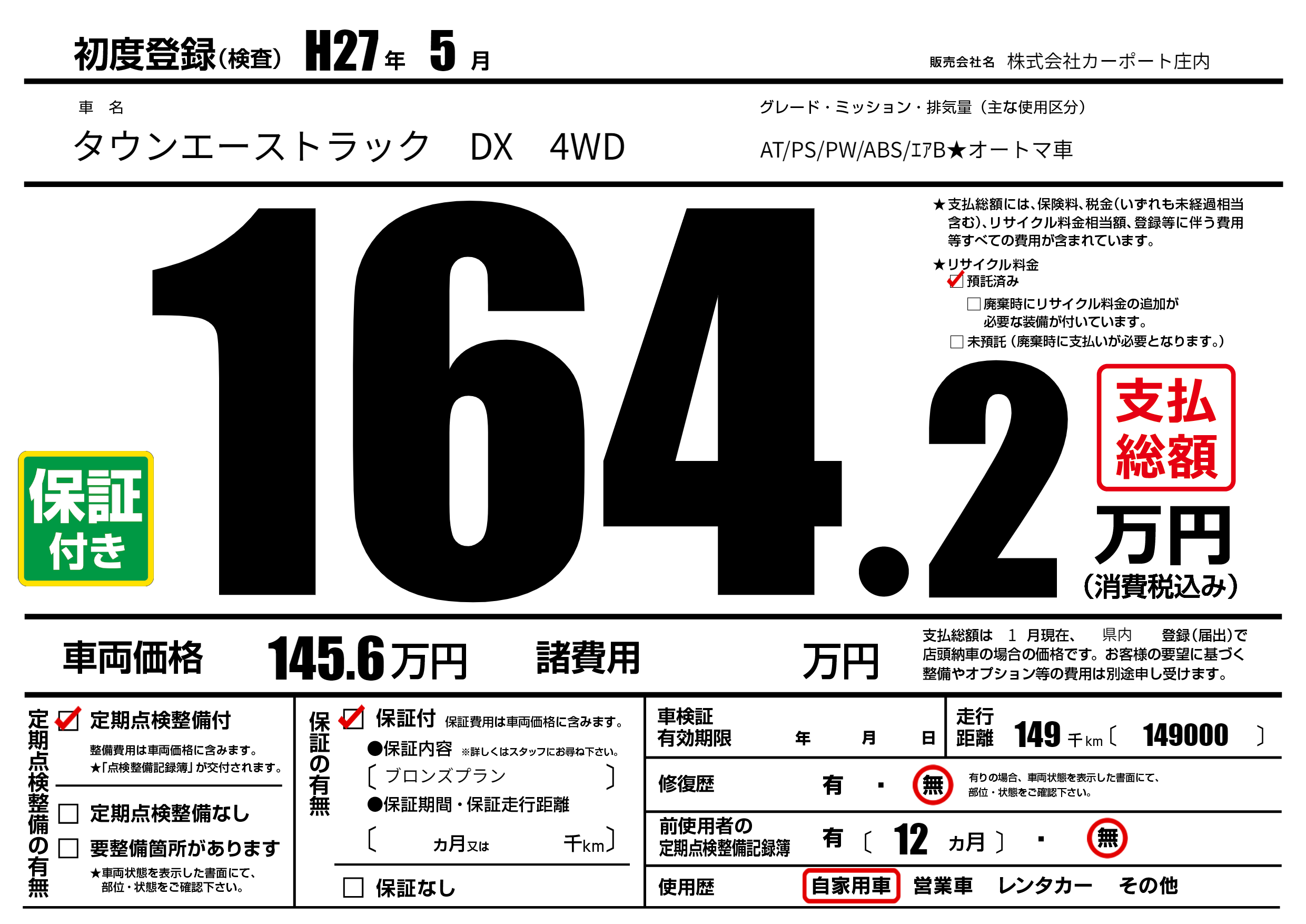 定期点検整備 | 定期点検整備あり |