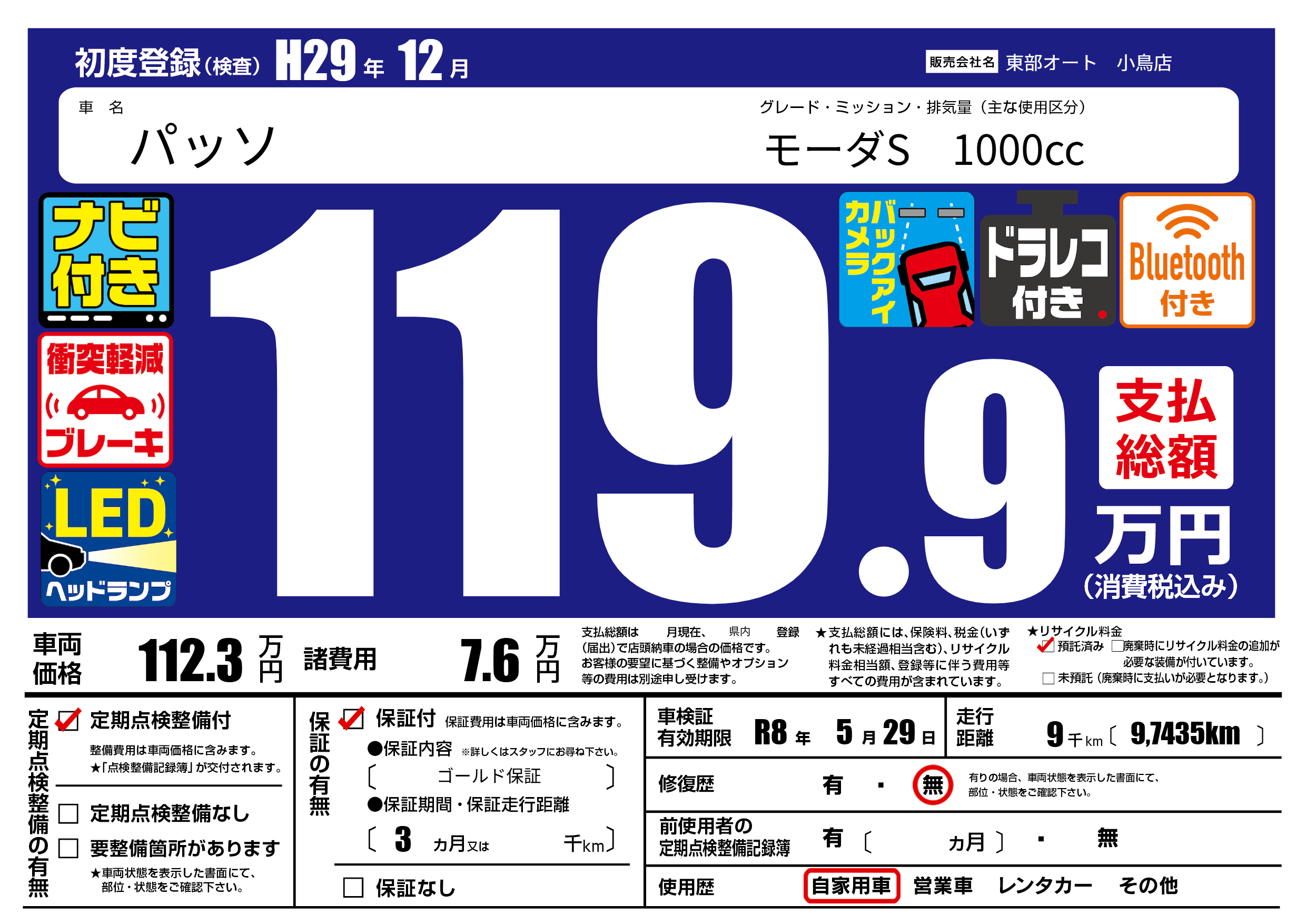 保証付き 保証内容( ゴールド保証) 3ヶ月または千km |