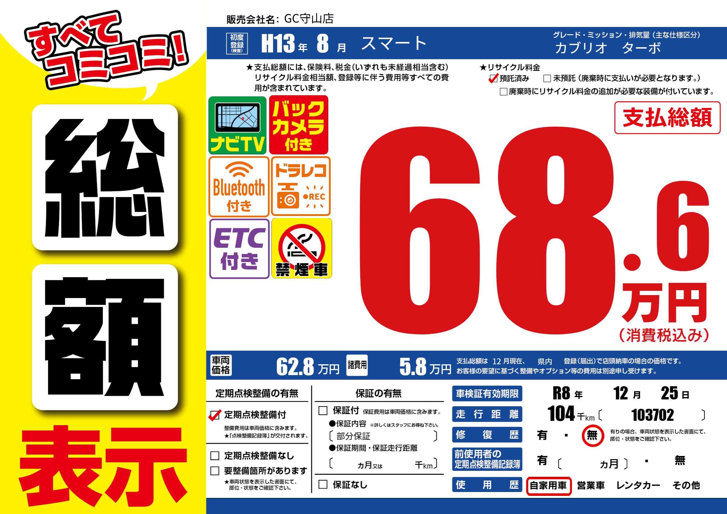 なし | 車検制限 | R8年12月25月 |