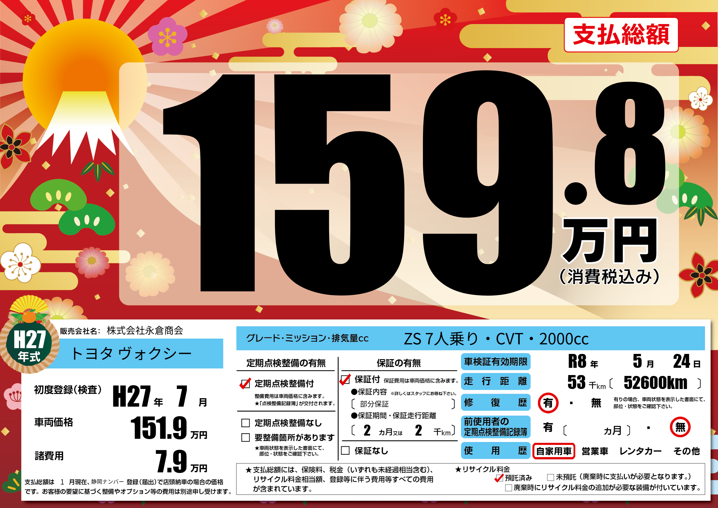| 走行キロ | 5.3万km | 初年度登録 | H27年7月 |