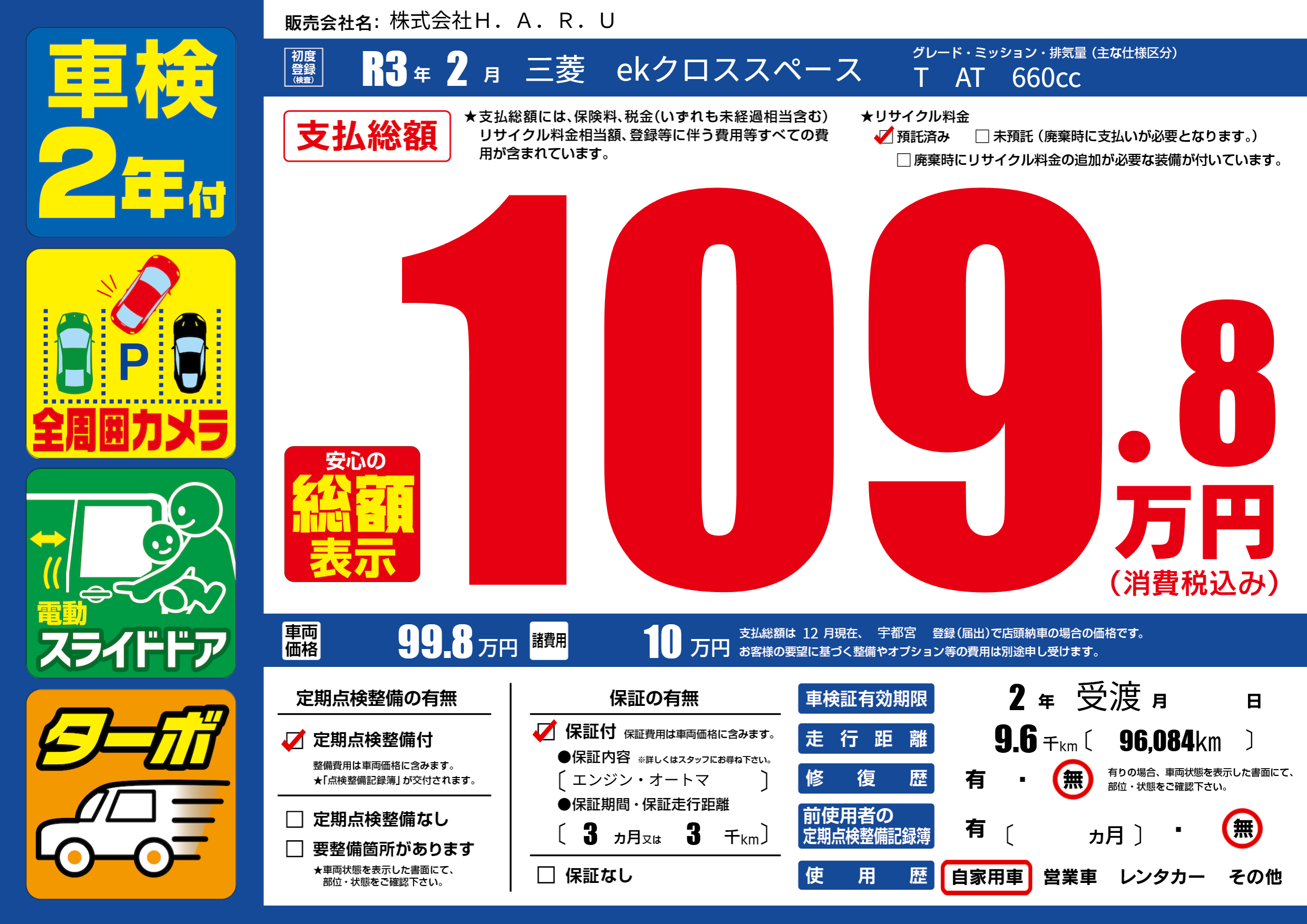 なし | 車検制限 | 2年受渡月---月 |