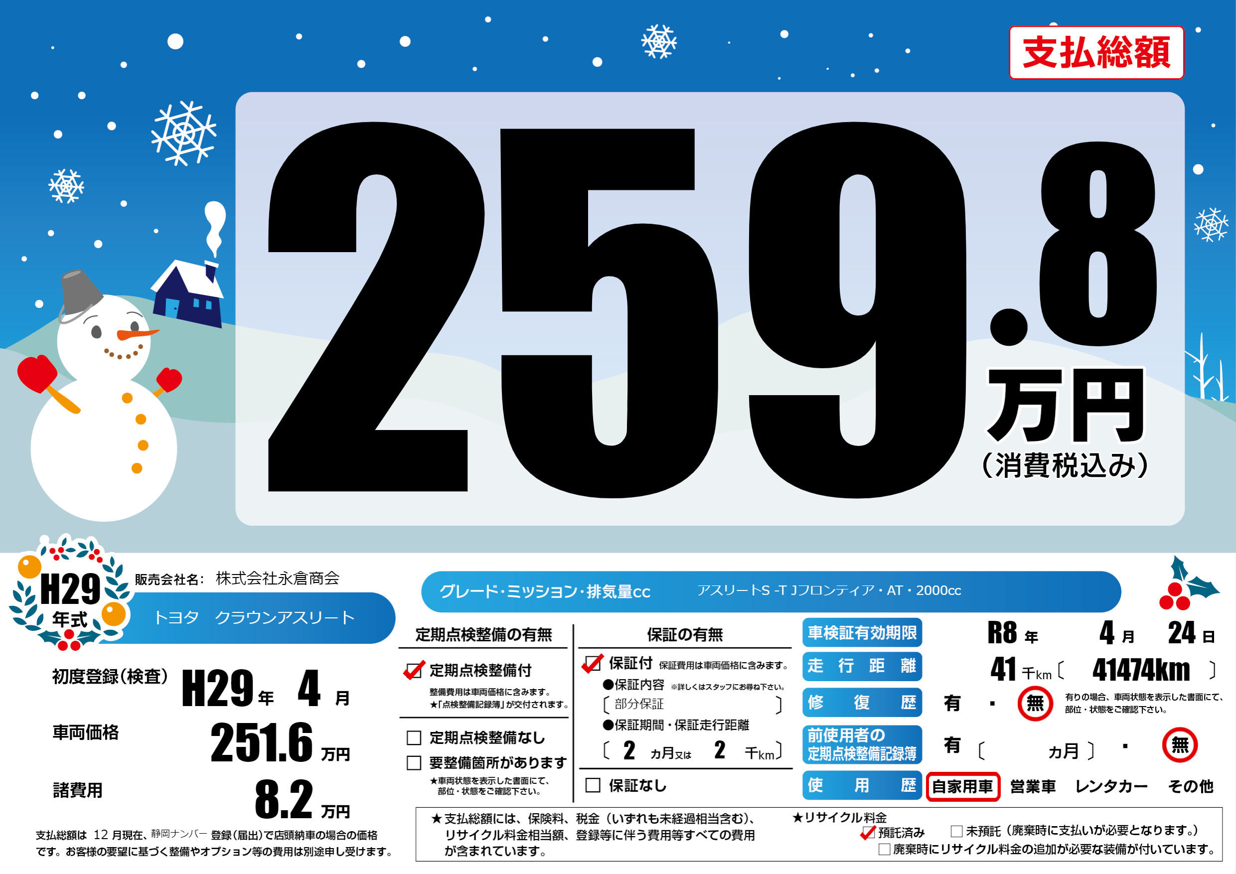 | 車名 | トヨタ クラウンアスリート | グレード ミッション 排気量 |