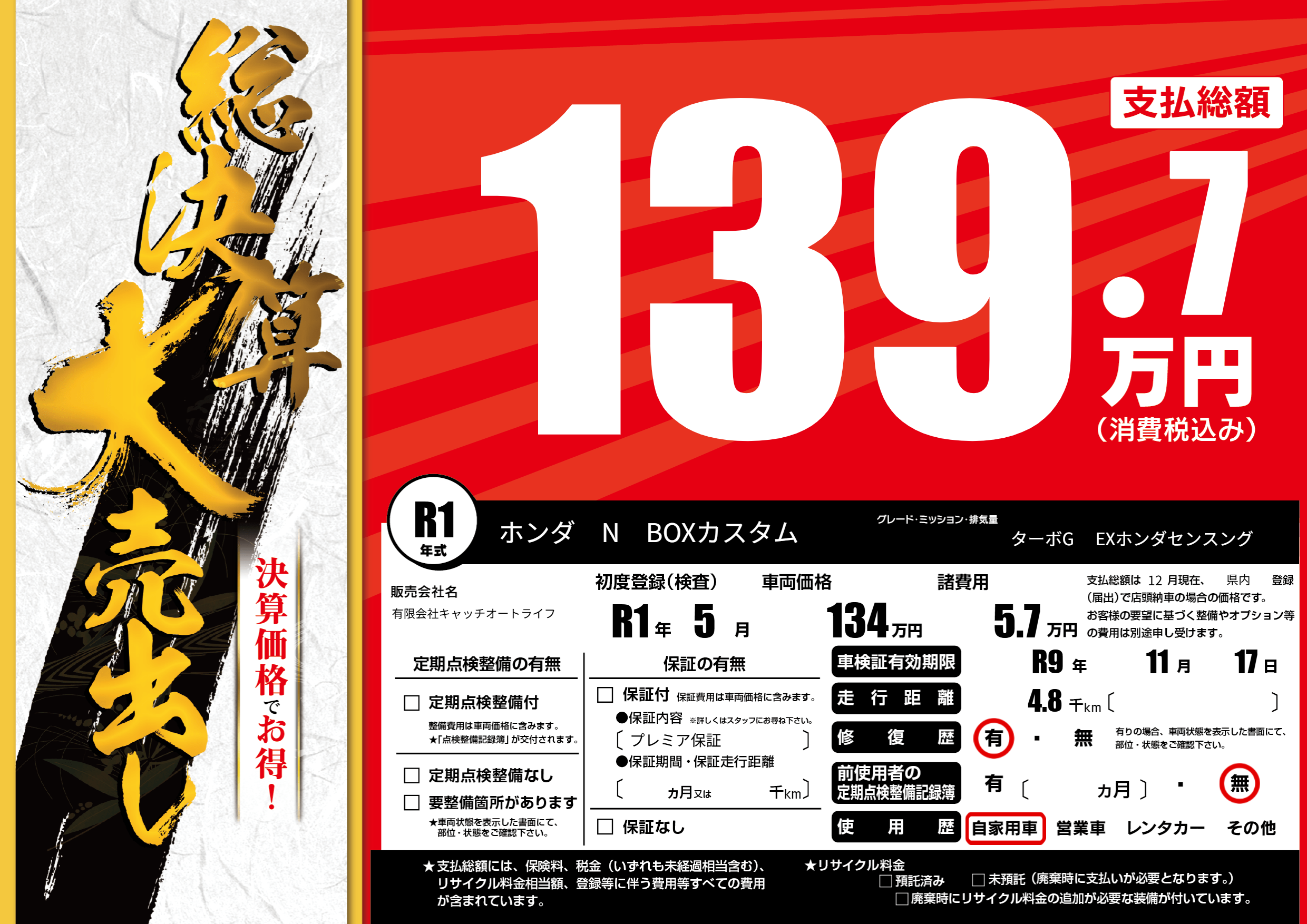 なし | 車検制限 | R9年11月17月 |