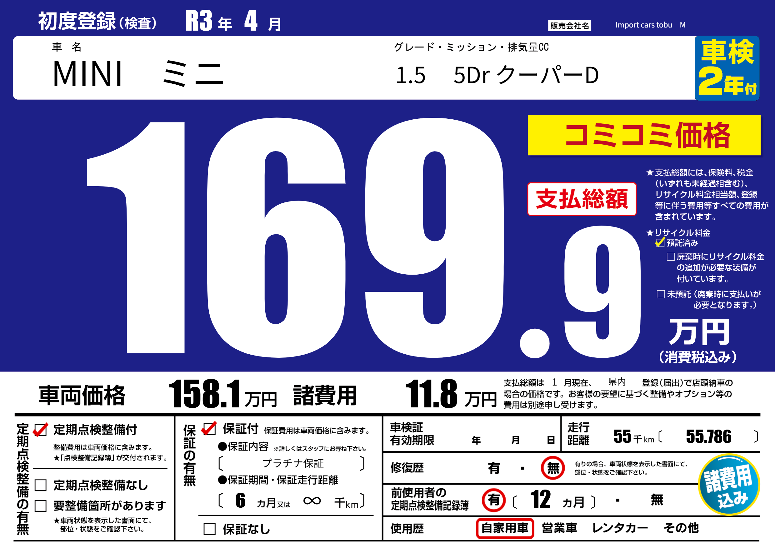 保証付き 保証内容( プラチナ保証) 6ヶ月または(∞)千kmまで |