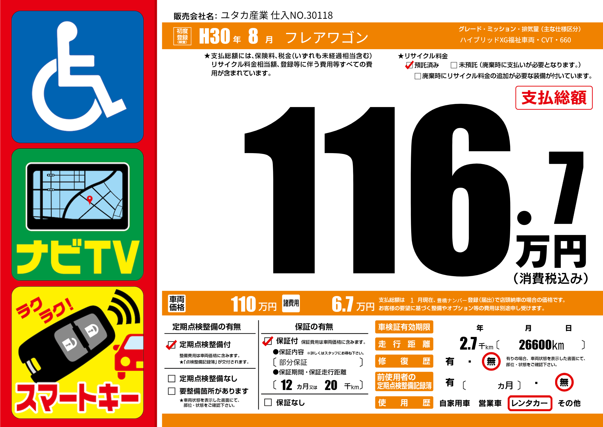 | 初年度登録 | H30年8月 | ||