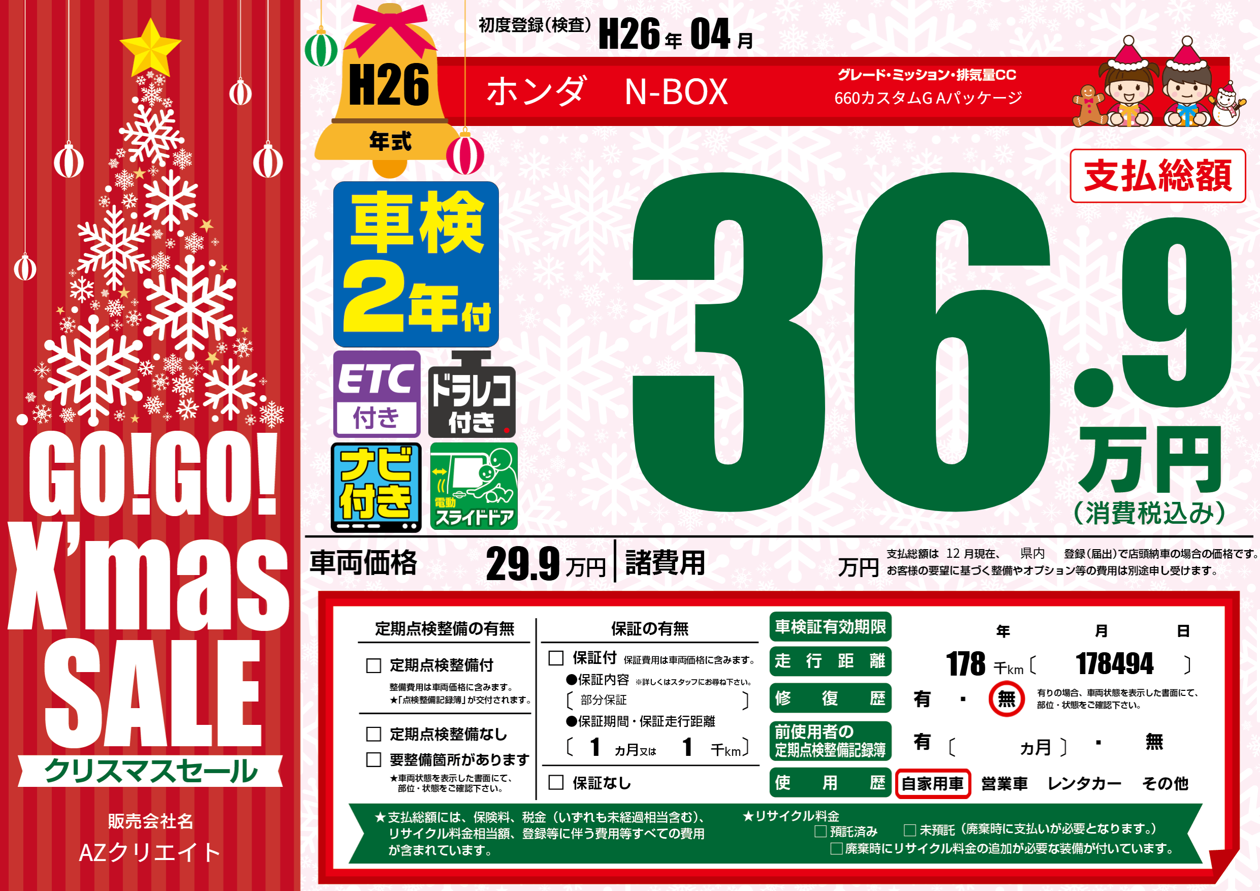 | 走行キロ | 17.8万km | 初年度登録 | H26年04月 |