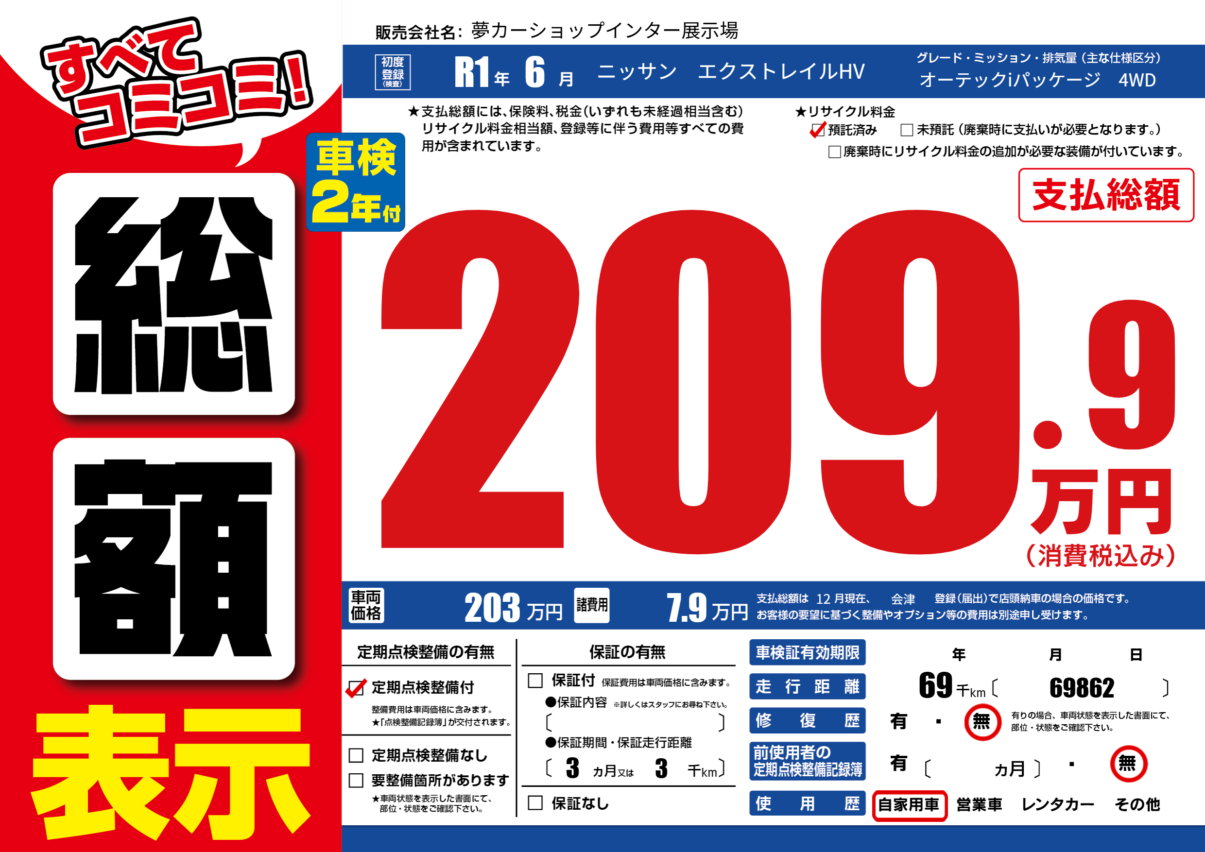 | 走行キロ | 6.9万km | ||
