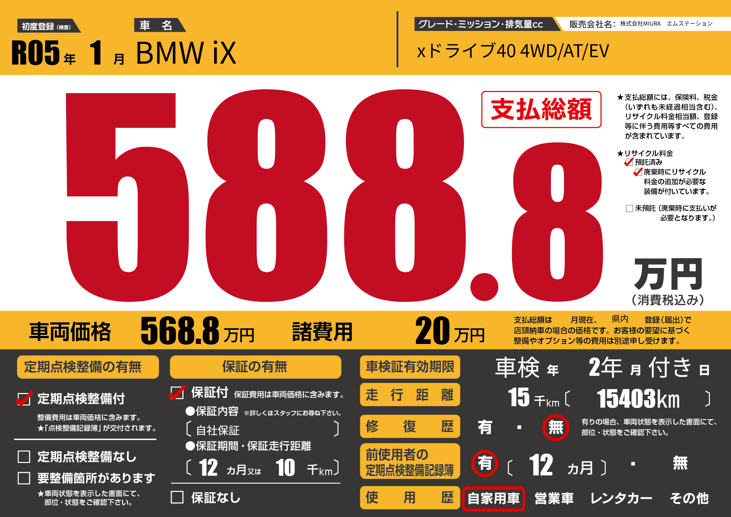 | 車名 | BMW iX | グレード ミッション 排気量 |
