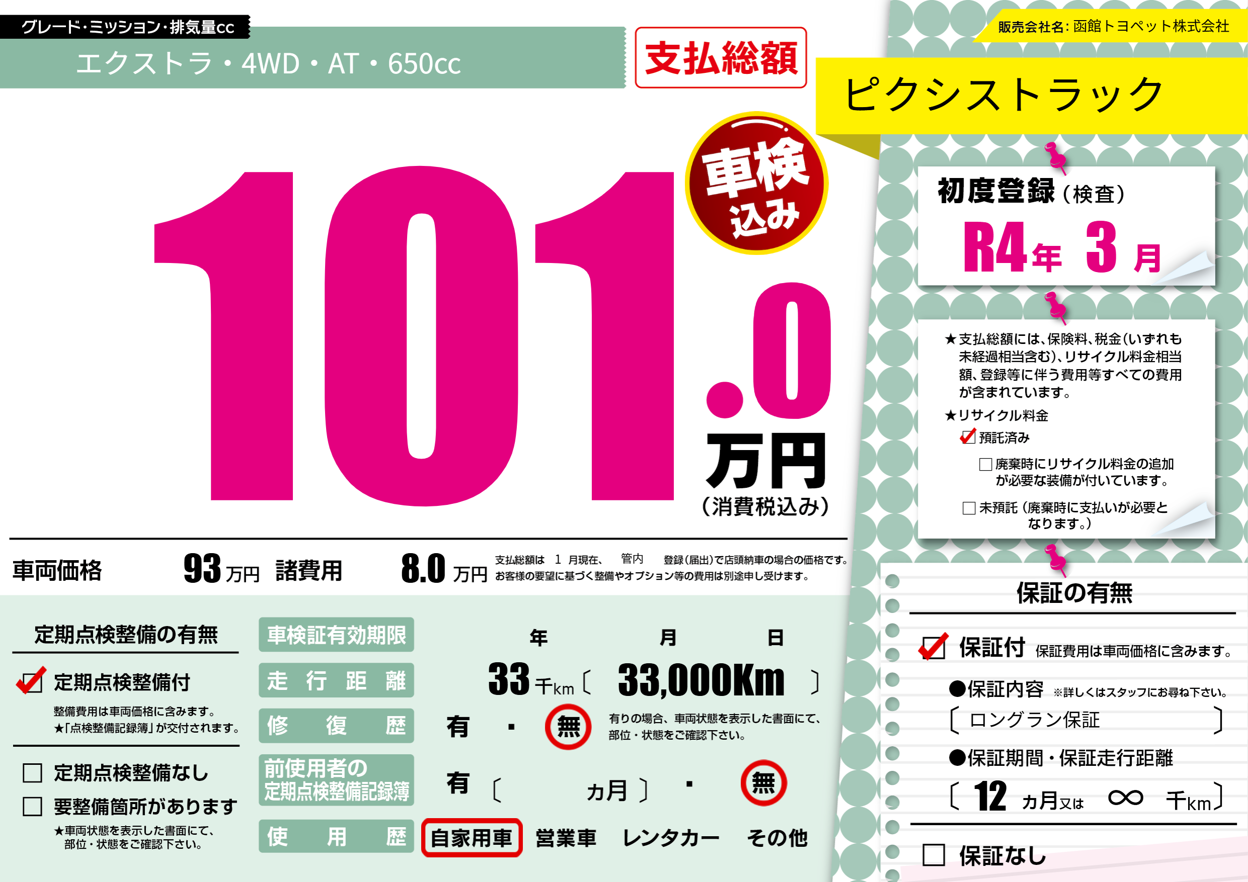 | 定期点検整備 | 定期点検整備あり | ||