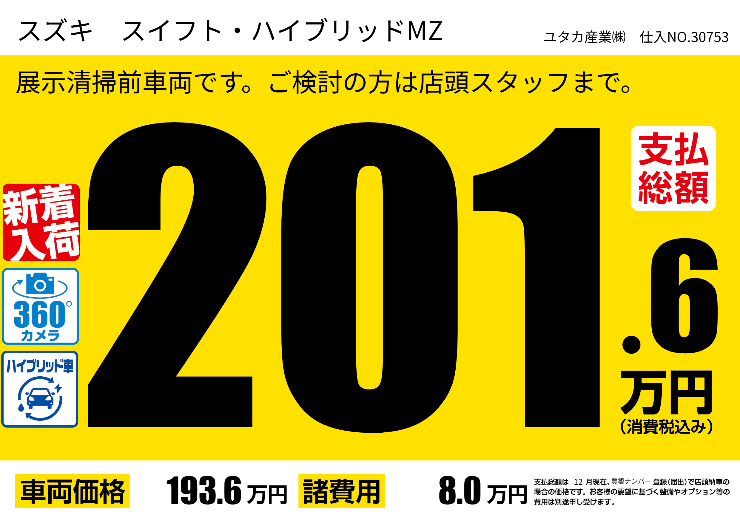 | 車名 | スズキ スイフト・ハイブリッドMZ | グレード ミッション 排気量 |