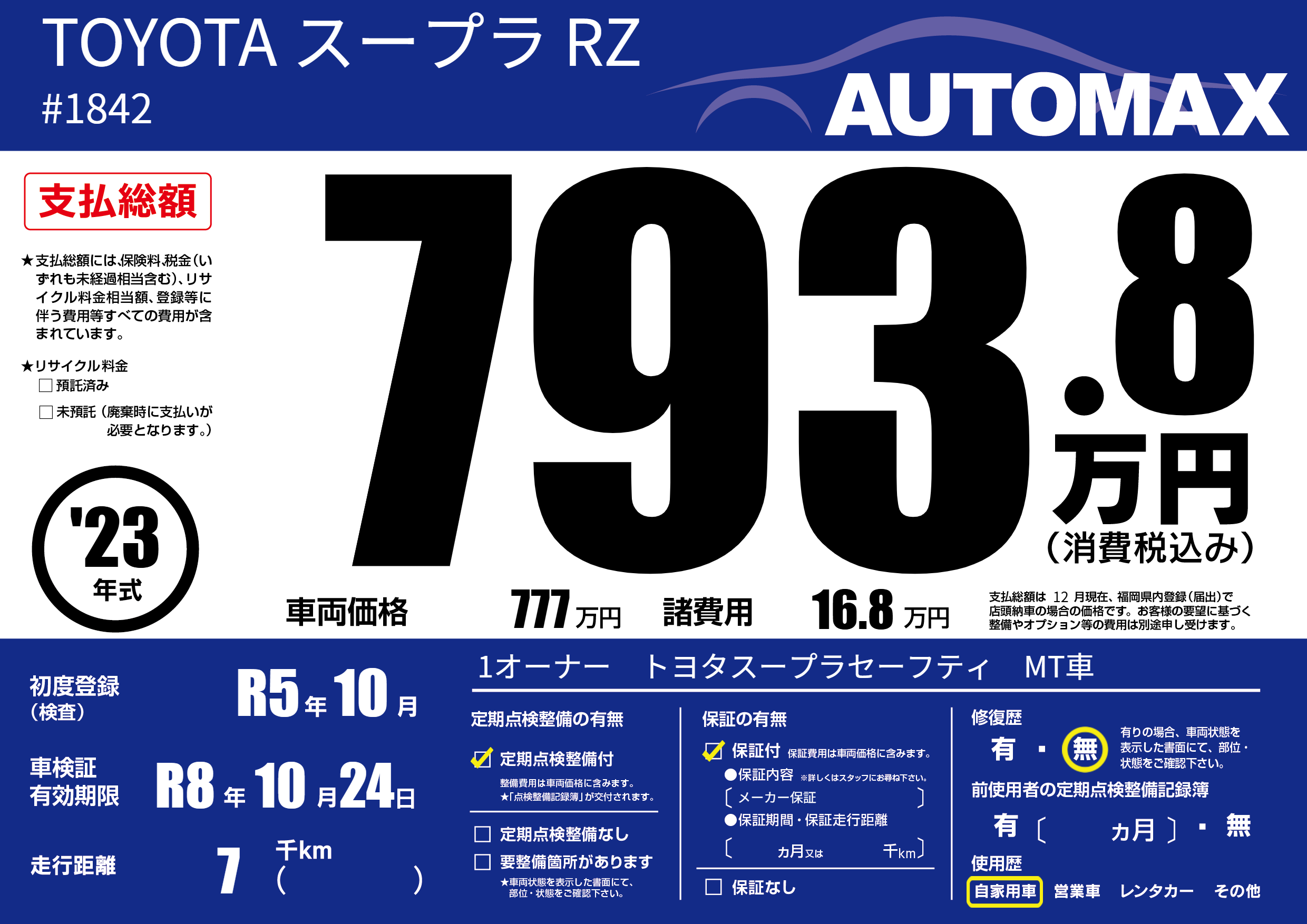 | 車検制限 | R8年 10月 24日 | ||