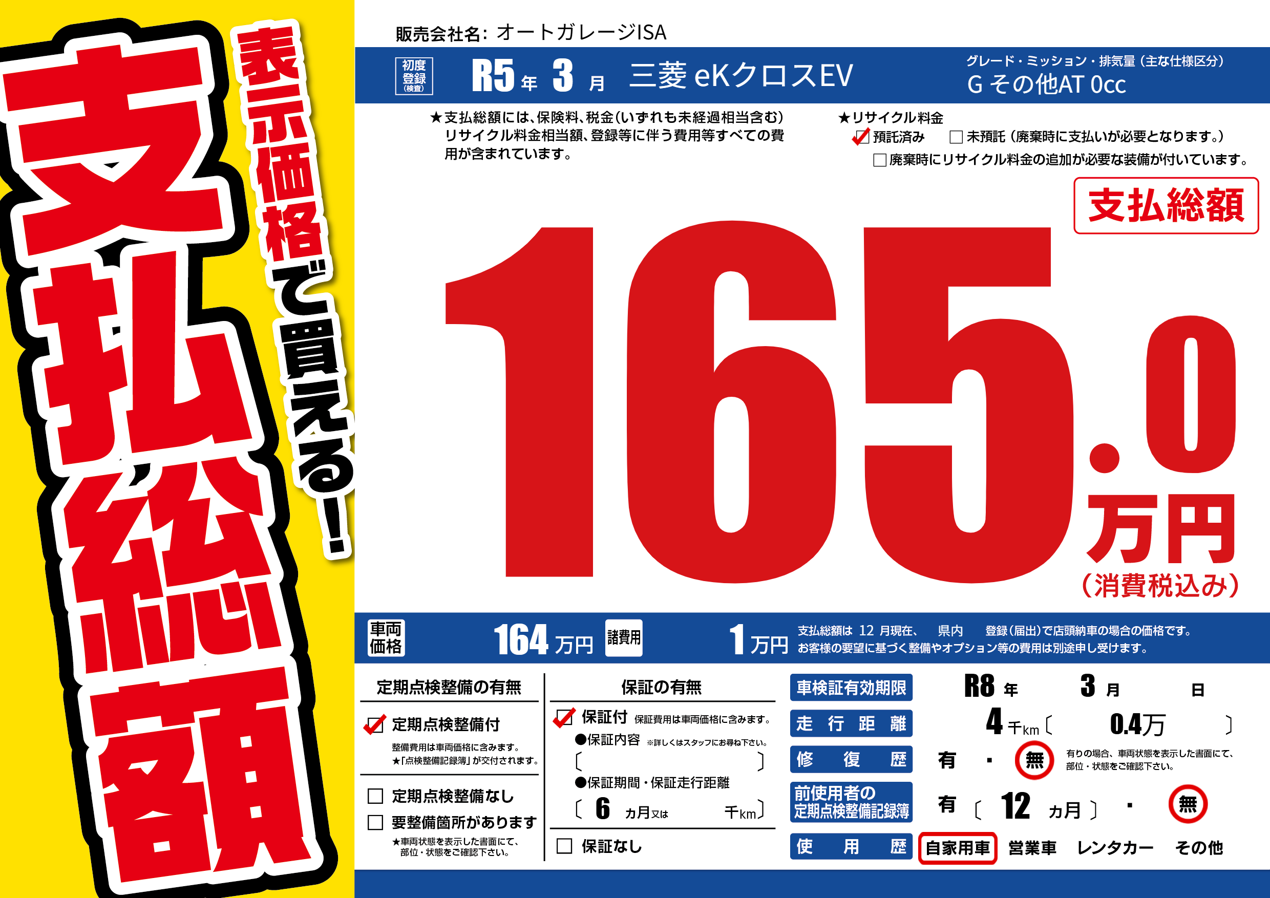 | 車検制限 | R8年 3月 - 日 | ||
