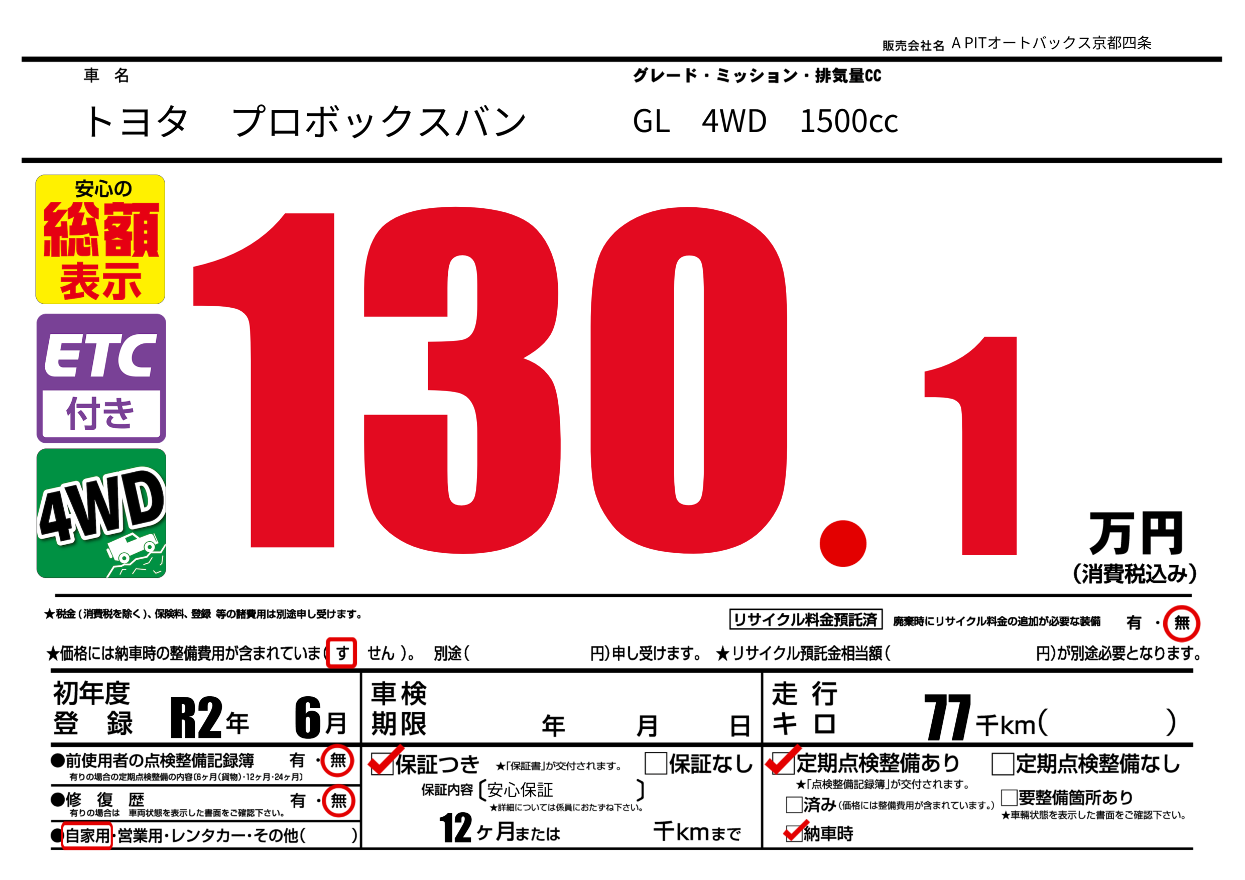 | 車検制限 | - 年 - 月 - 日 | ||