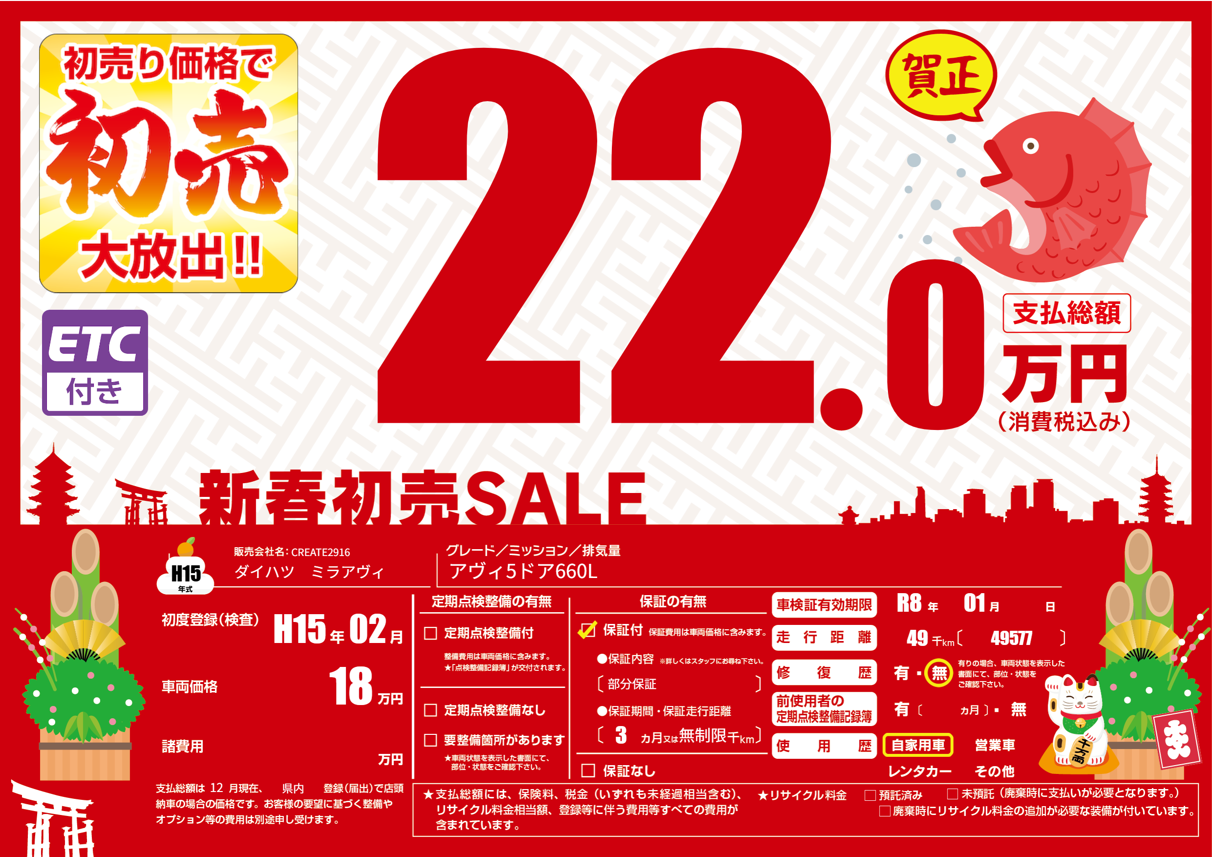 なし | 車検制限 | R8年01月---月 |