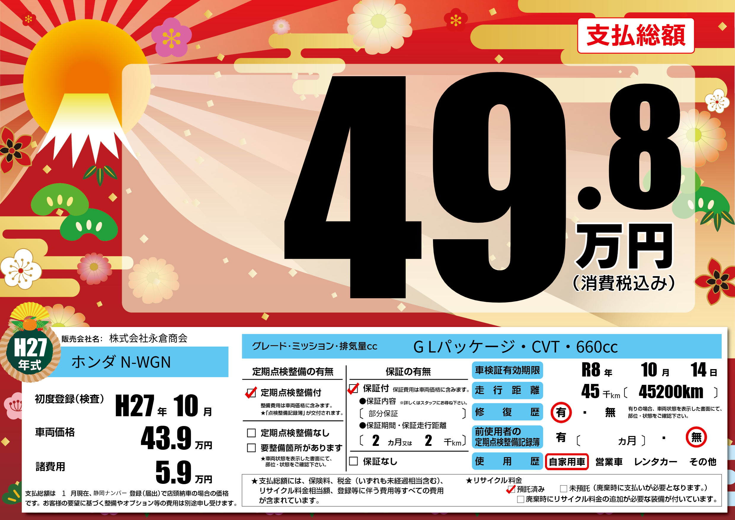 | 車名 | ホンダ N-WGN | グレード ミッション 排気量 |