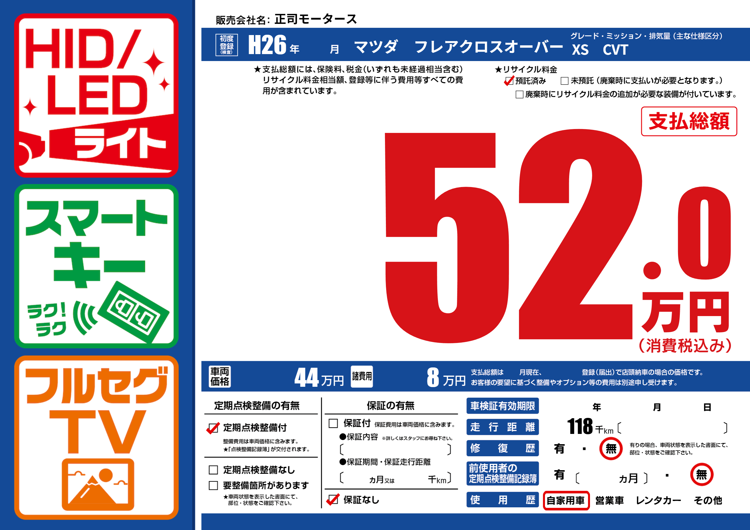 | 走行キロ | 11.8万km | ||
