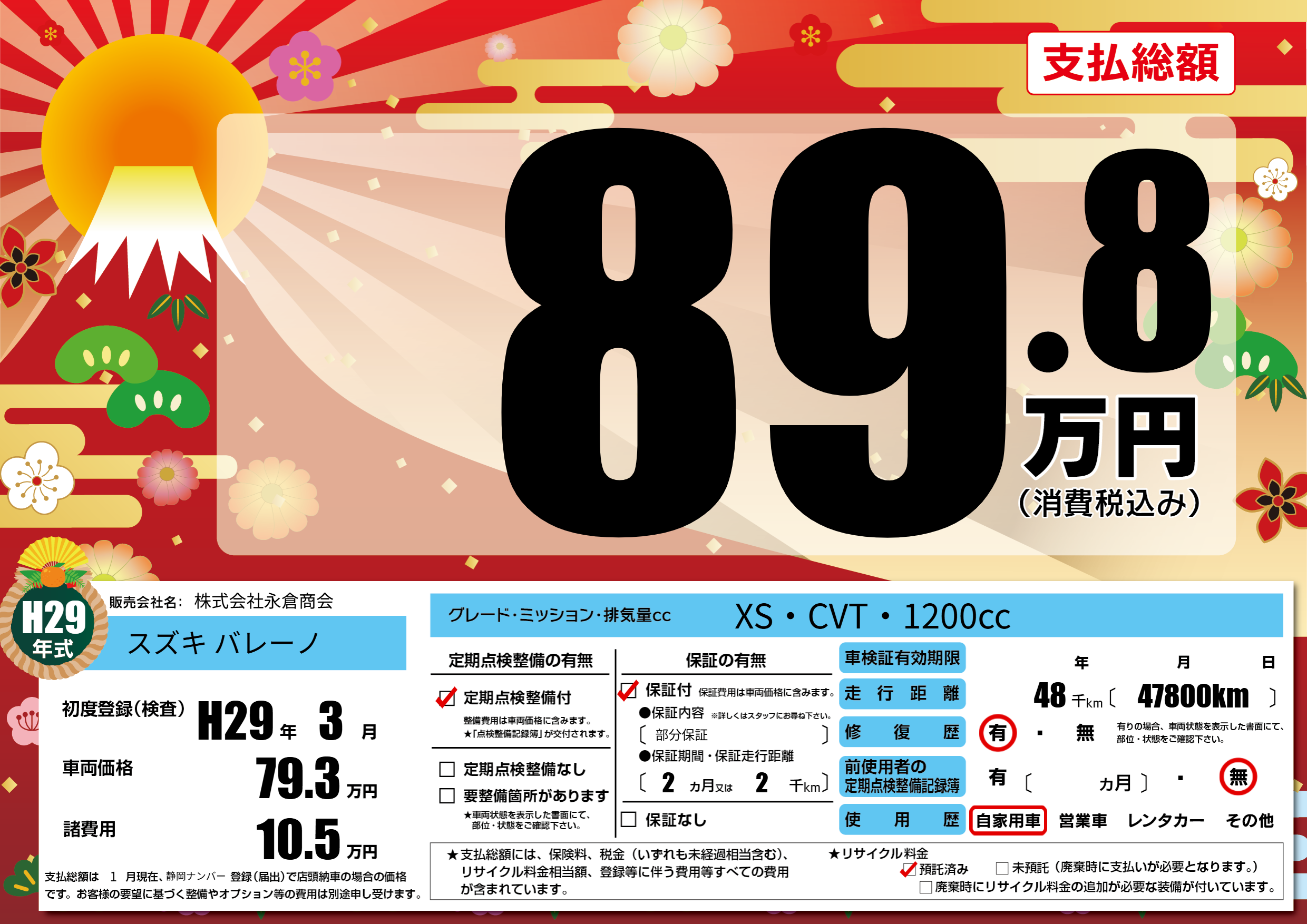 | 車名 | スズキ バレーノ | グレード ミッション 排気量 |