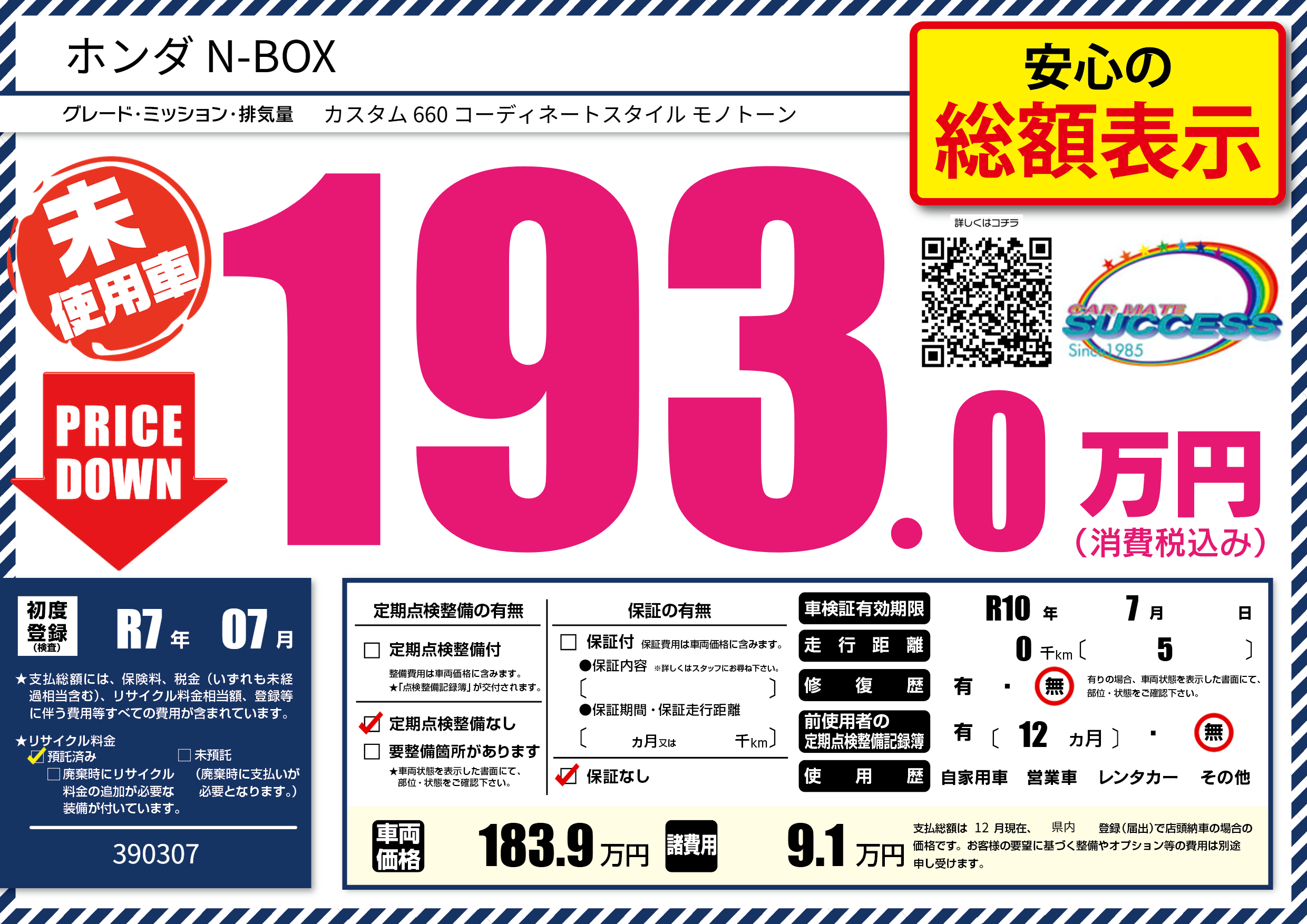 なし | 車検制限 | R10年7月---月 |