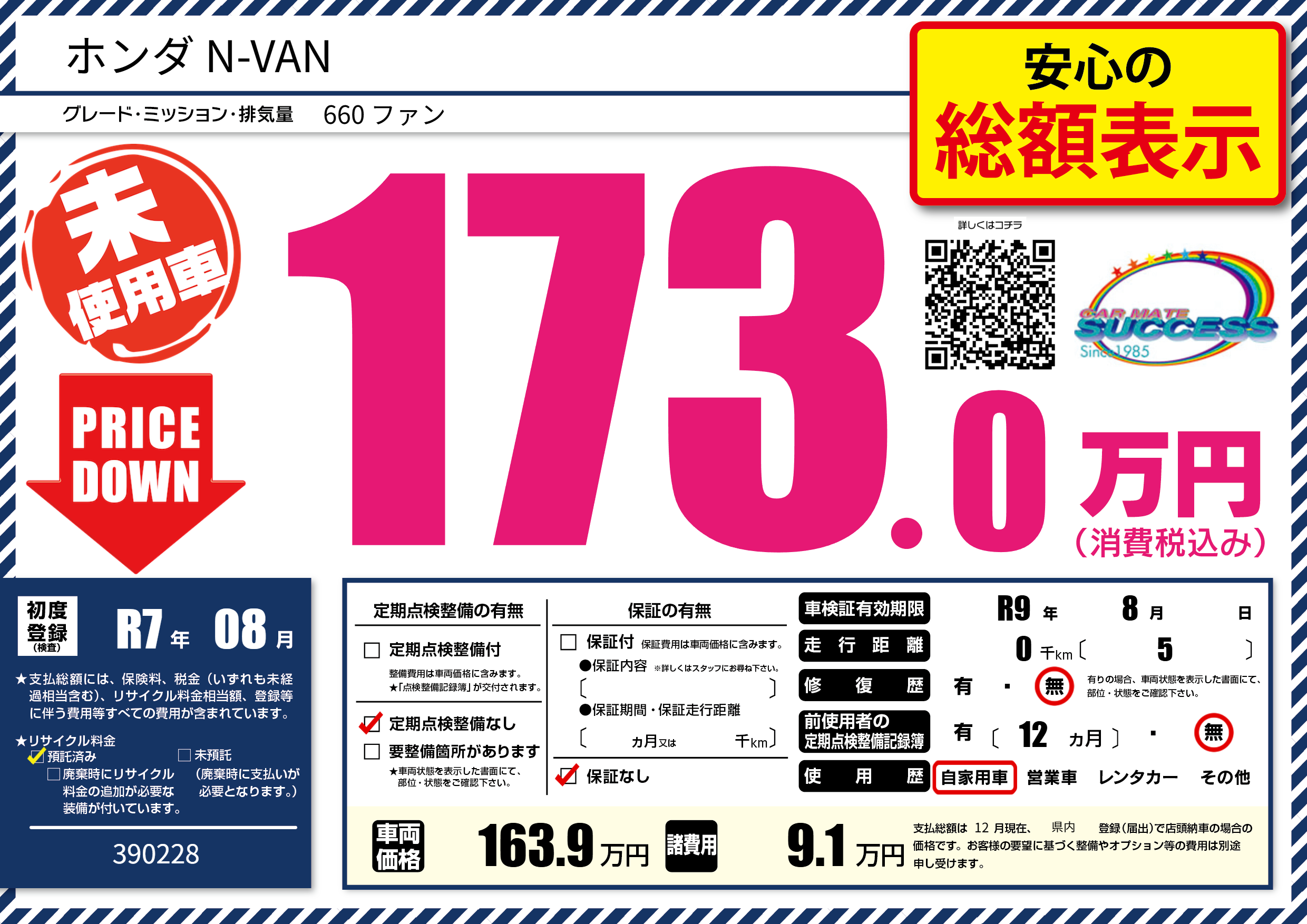 なし | 車検制限 | R9年8月---月 |