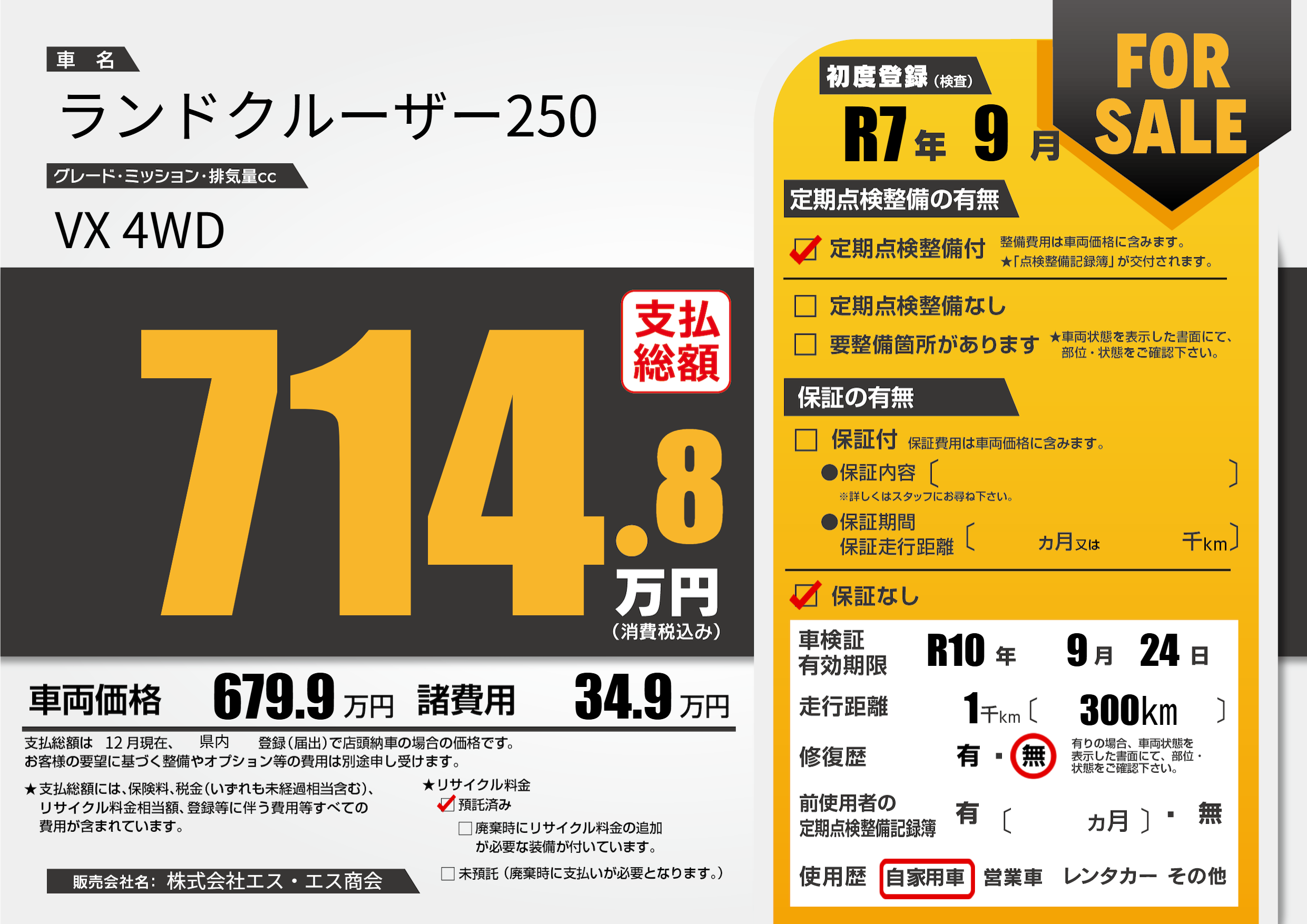 なし | 車検制限 | R10年9月24月 |
