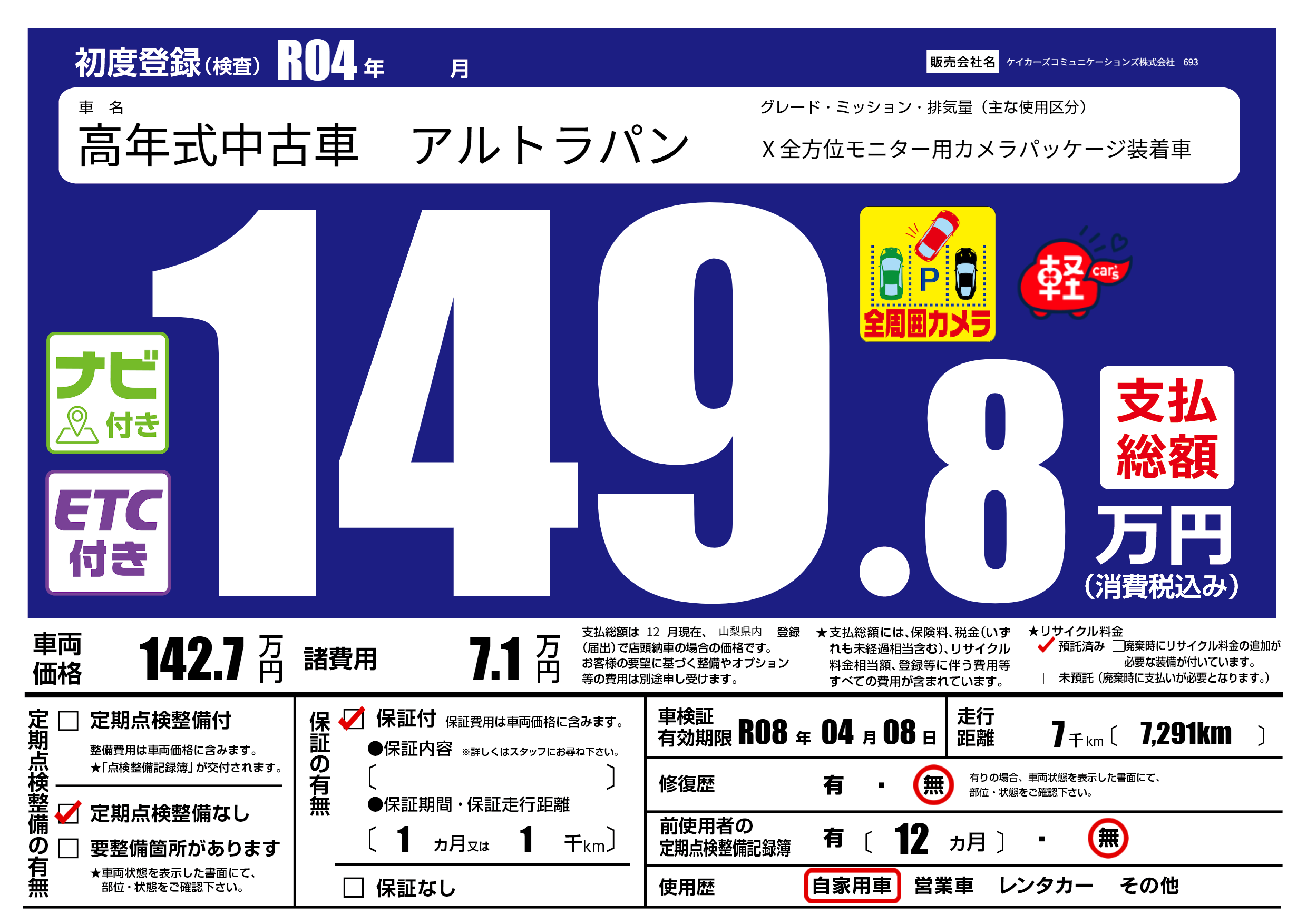 | 初年度登録 | R04年 | ||