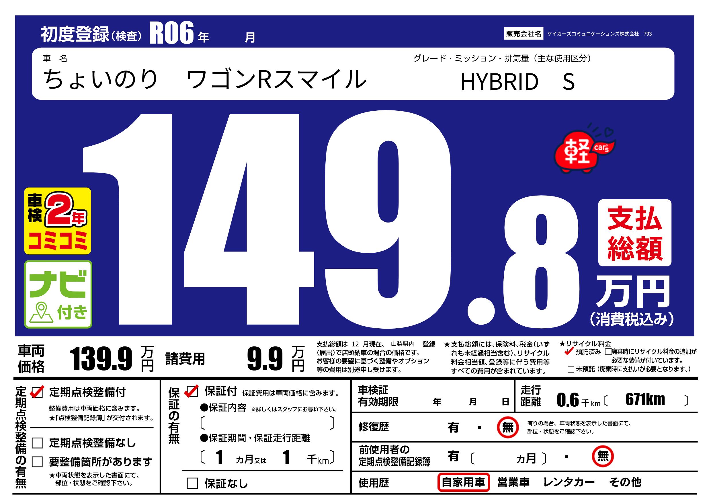 | 初年度登録 | R06年 | ||