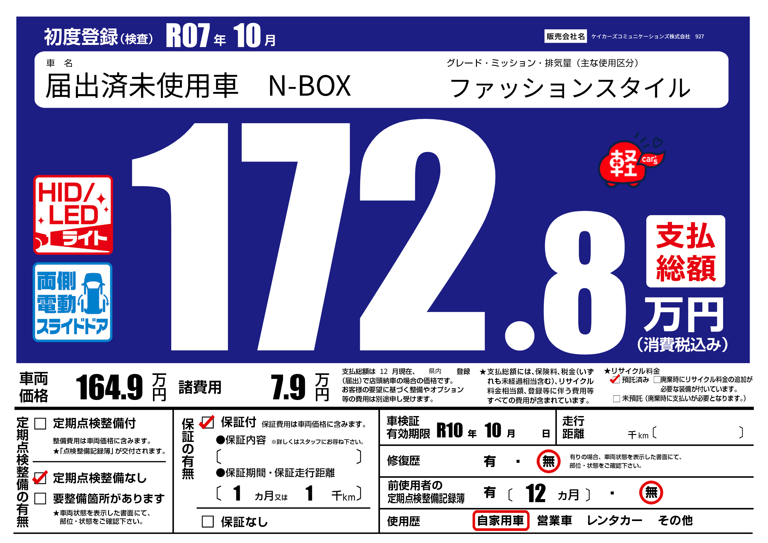 | 車検制限 | R10年 10月 - 日 | ||