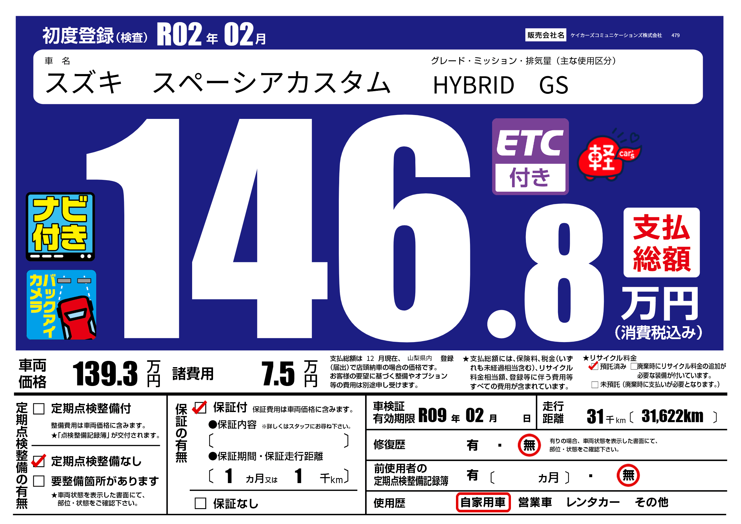 なし | 車検制限 | R09年02月---月 |