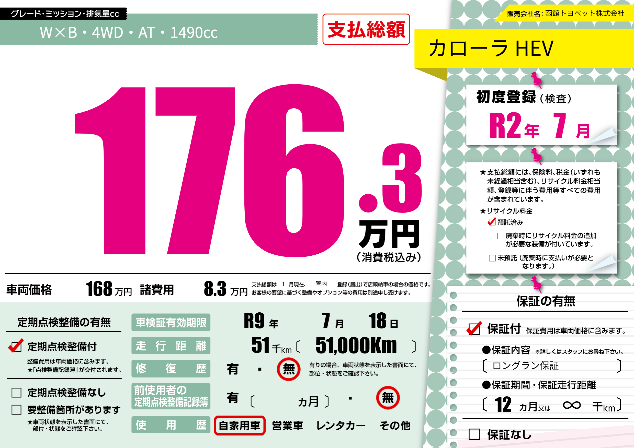 なし | 車検制限 | R9年7月18月 |