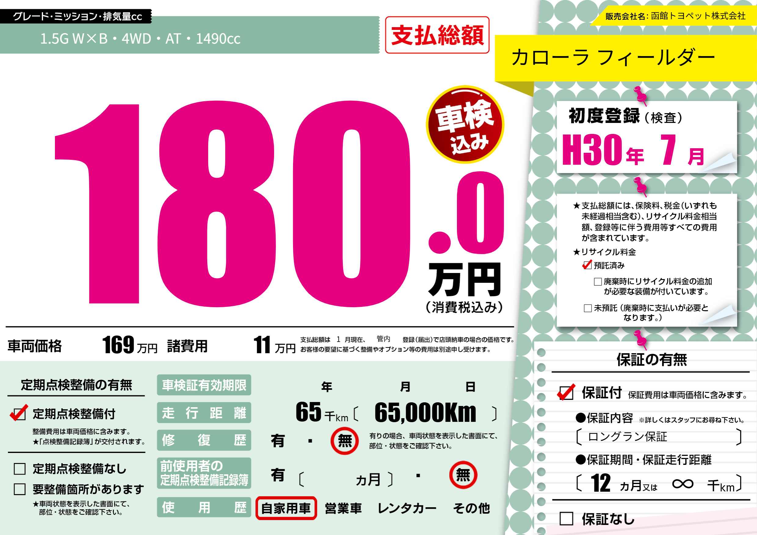 | 初年度登録 | H30年7月 | ||