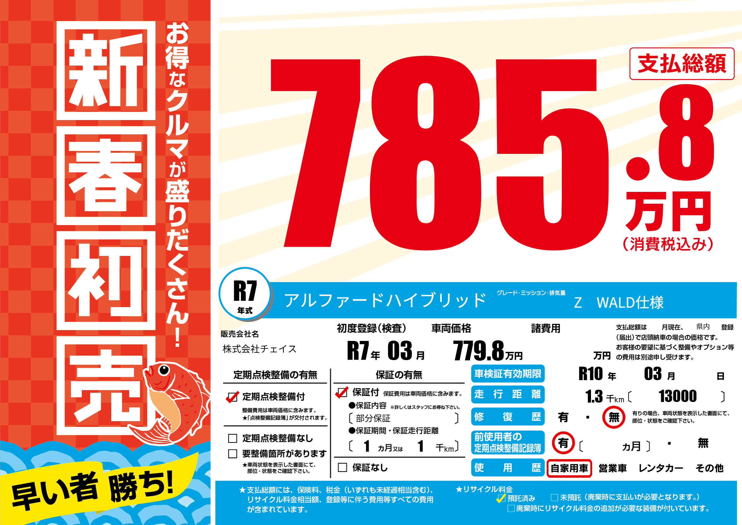 | 車検制限 | R10年 03月 - 日 | ||