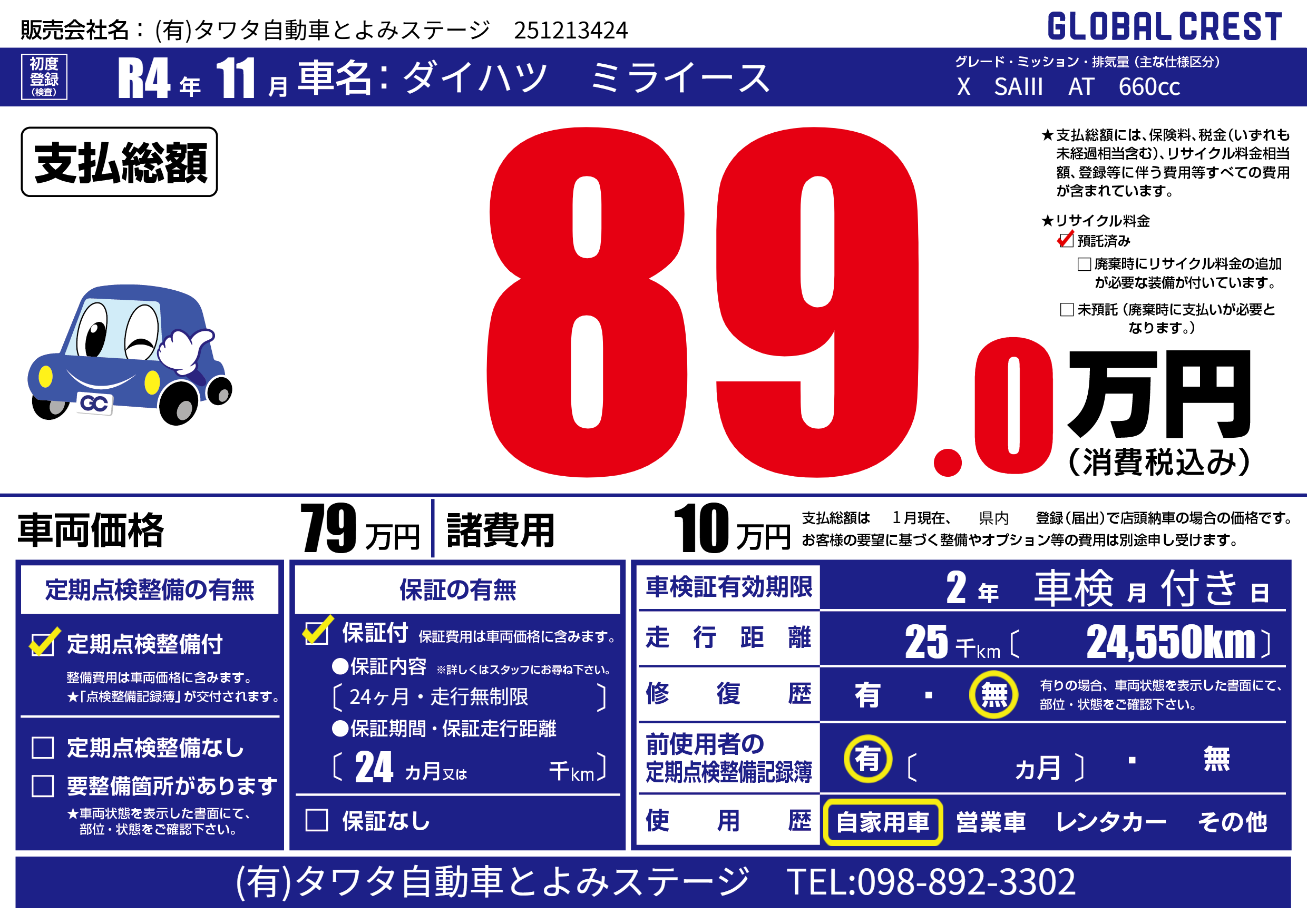 保証付き 保証内容(24ヶ月・走行無制限) 24ヶ月または千km |