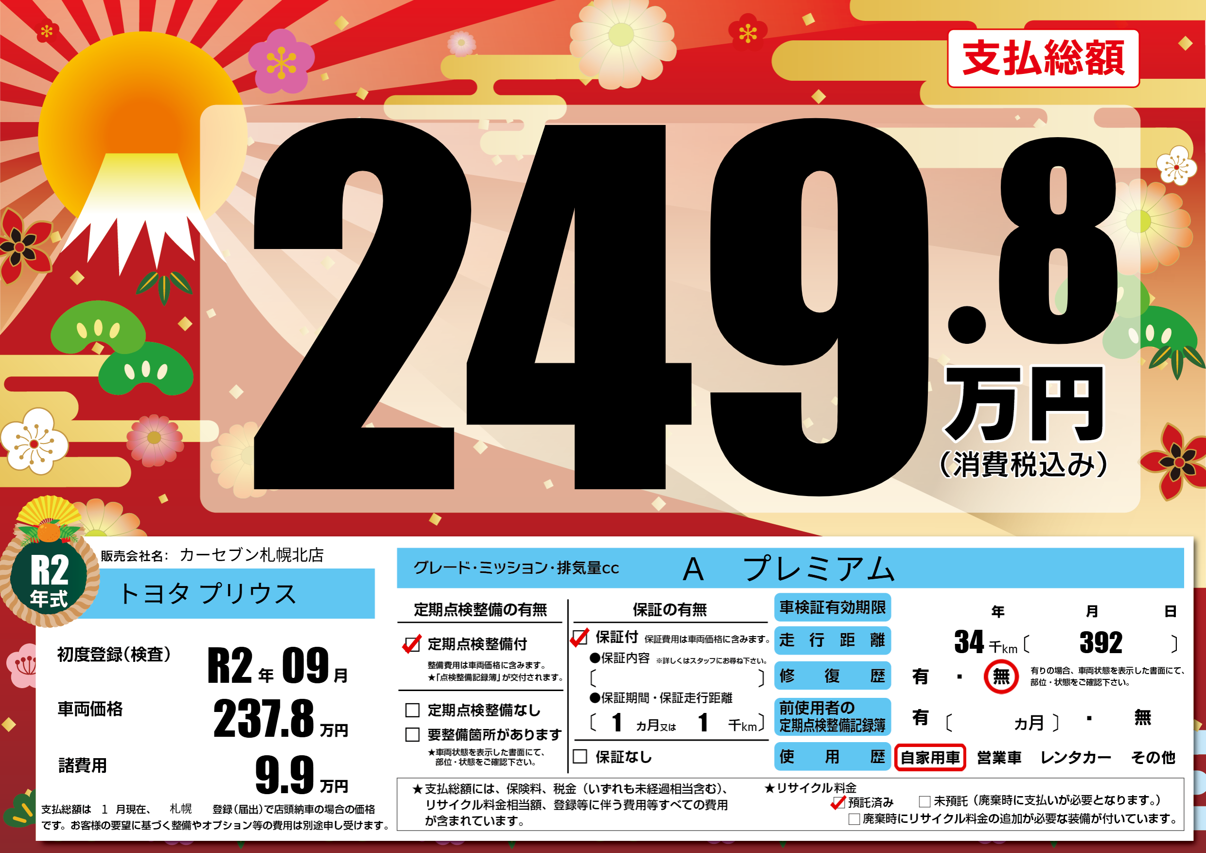 | 走行キロ | 3.4万km | 初年度登録 | R2年09月 |