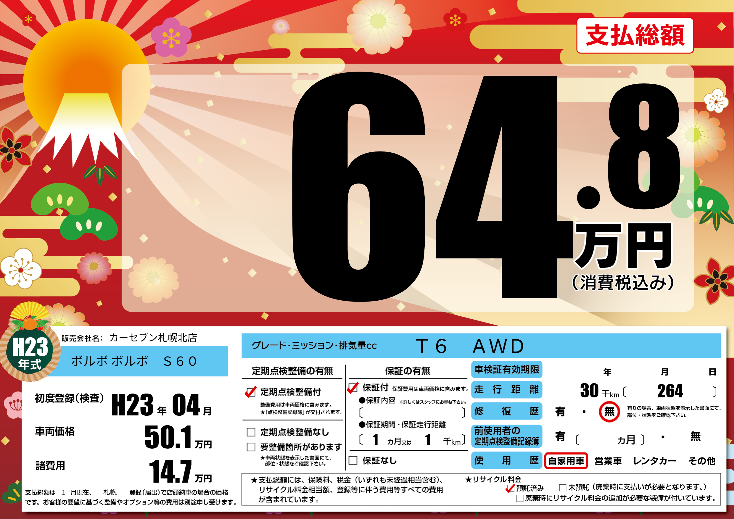 | 車名 | ボルボ ボルボ S60 | グレード ミッション 排気量 |