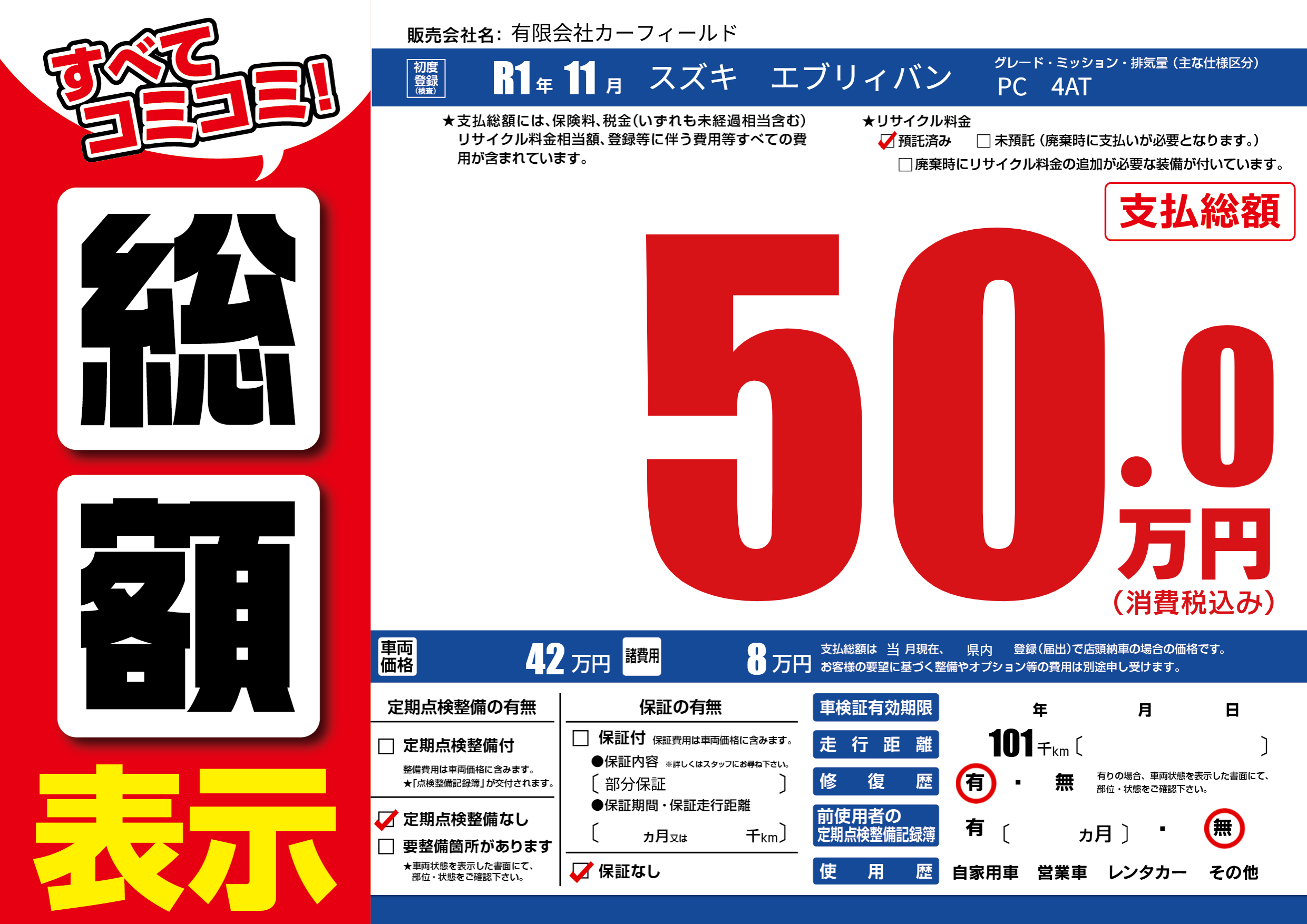 | 定期点検整備 | 定期点検整備なし | ||