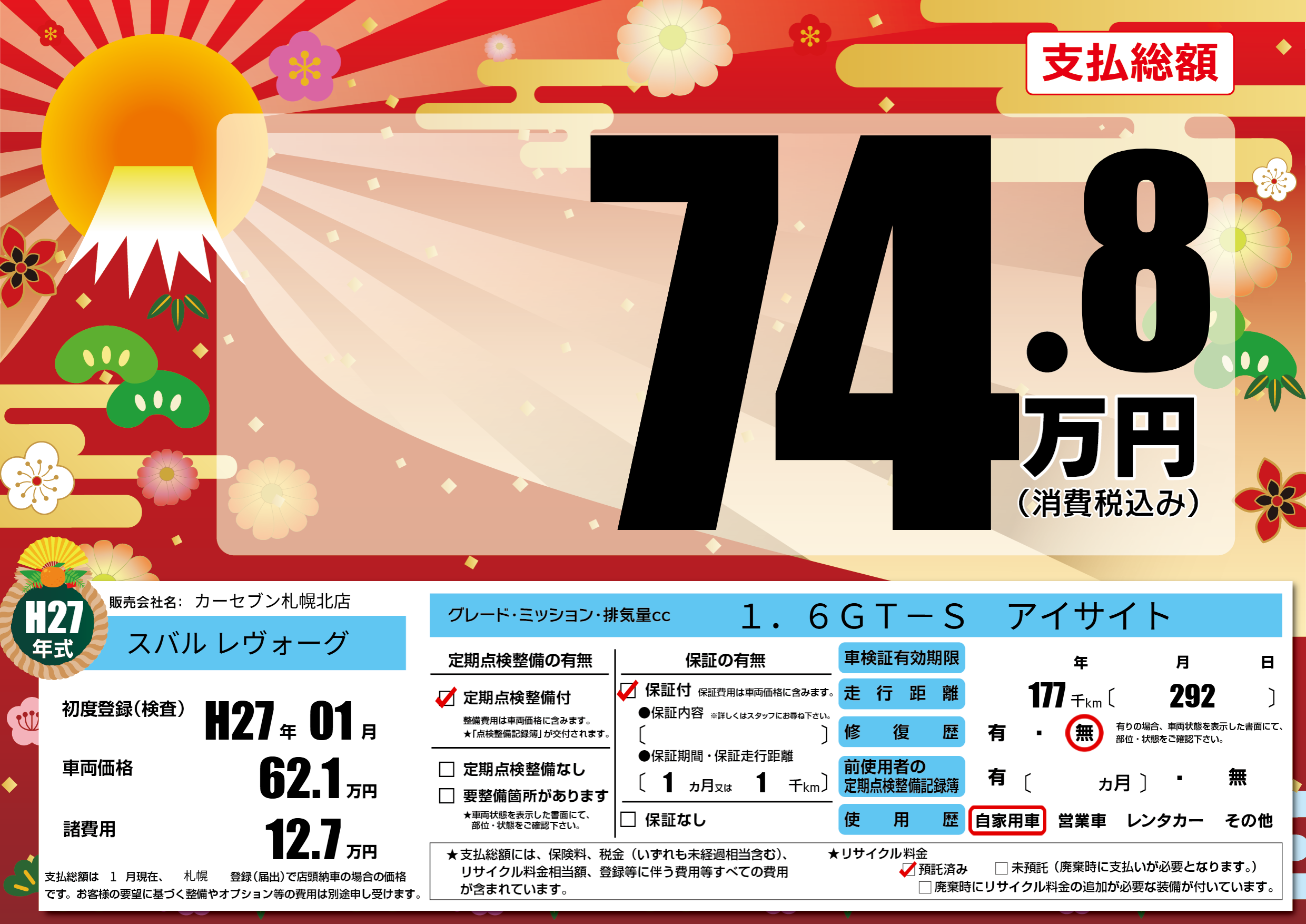 | 車名 | スバル レヴォーグ | グレード ミッション 排気量 |