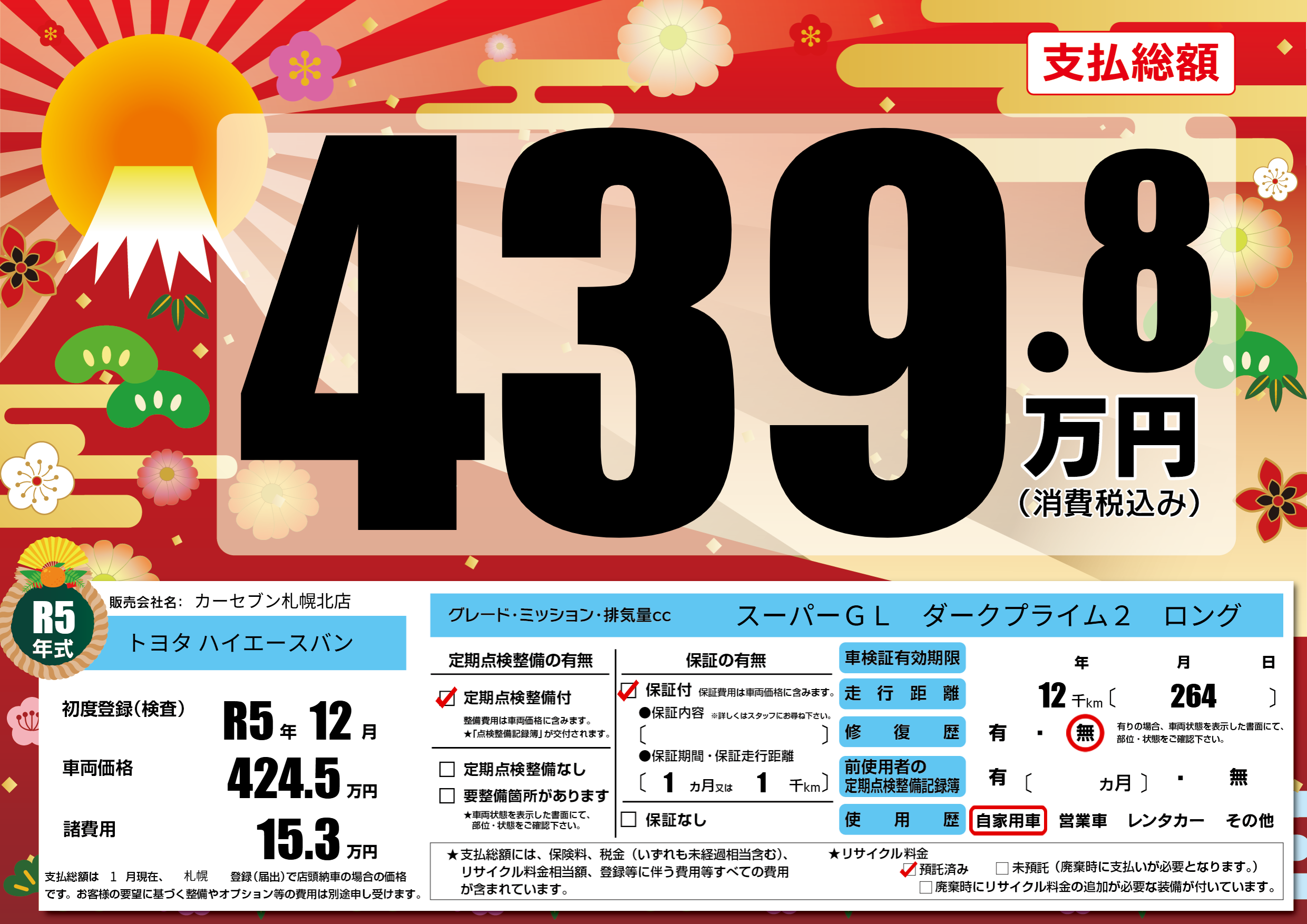 | 走行キロ | 1.2万km | 初年度登録 | R5年12月 |
