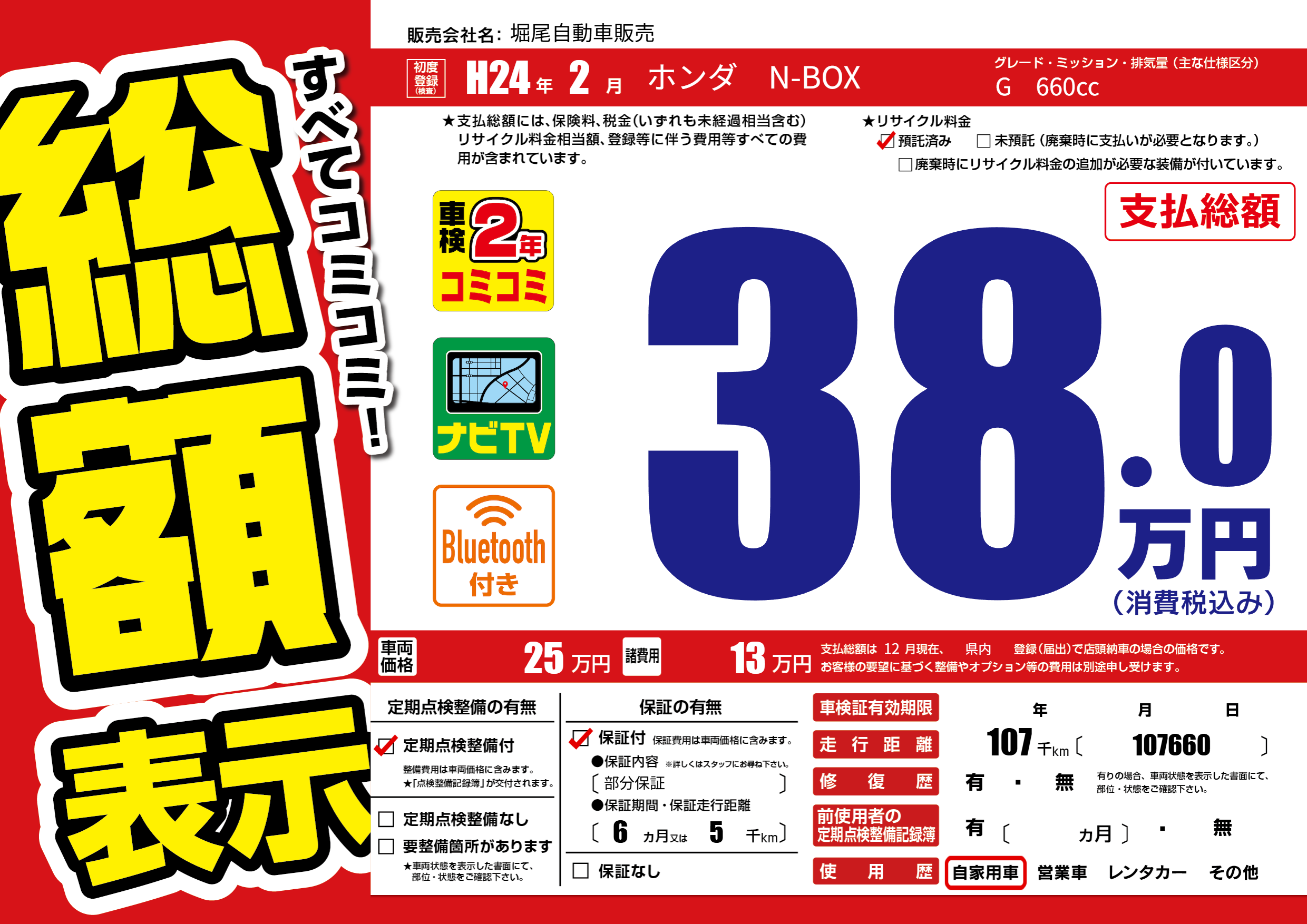 | 定期点検整備 | 定期点検整備あり | ||