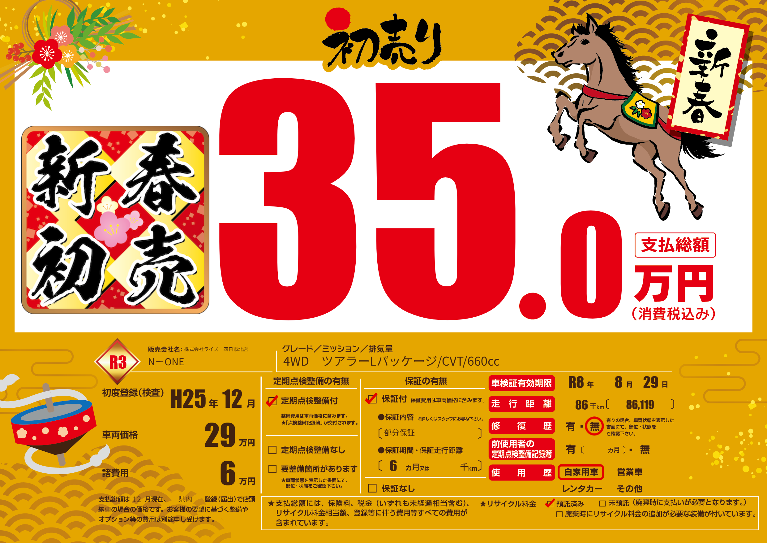 なし | 車検制限 | R8年8月29月 |
