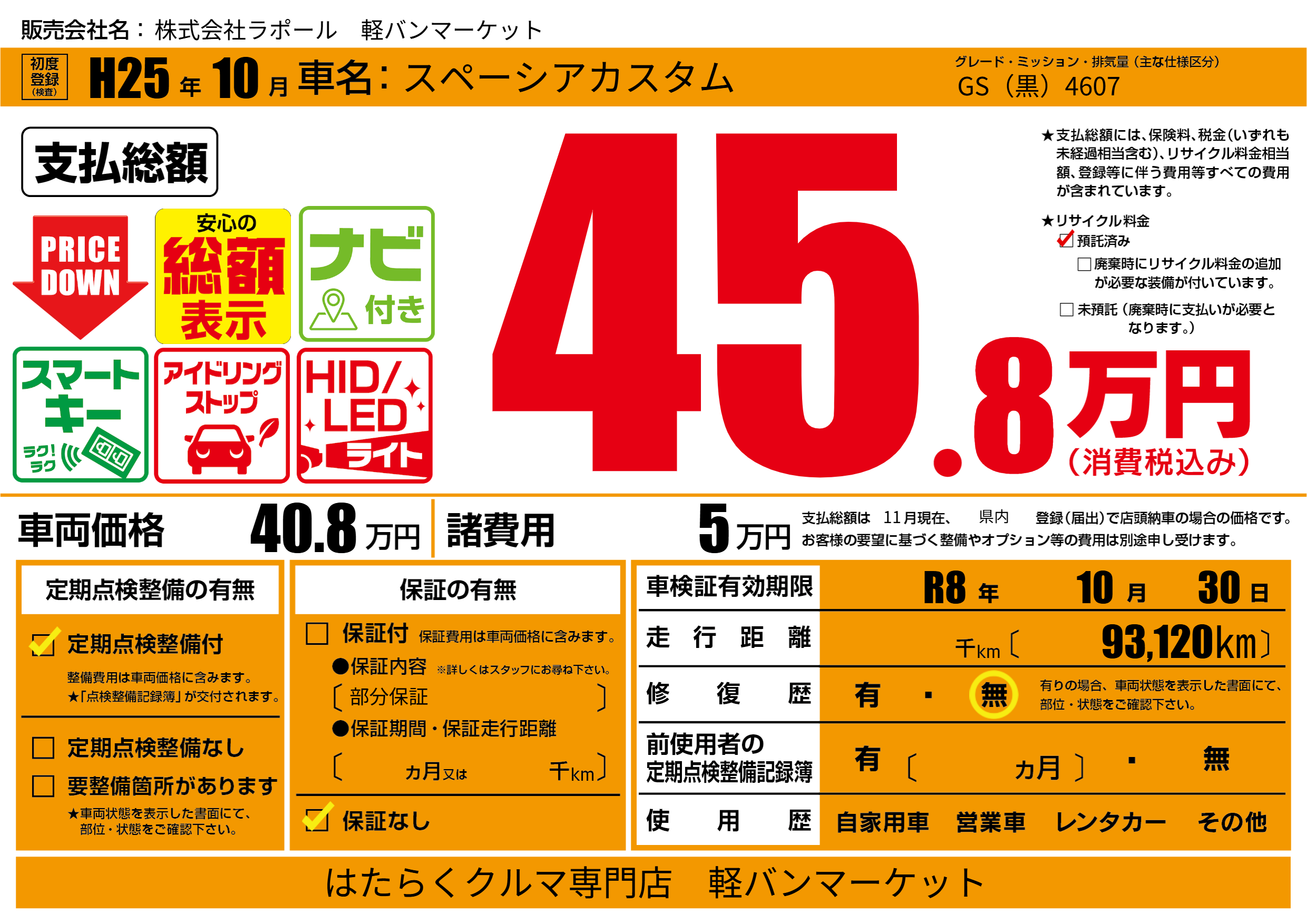 なし | 車検制限 | R8年10月30月 |