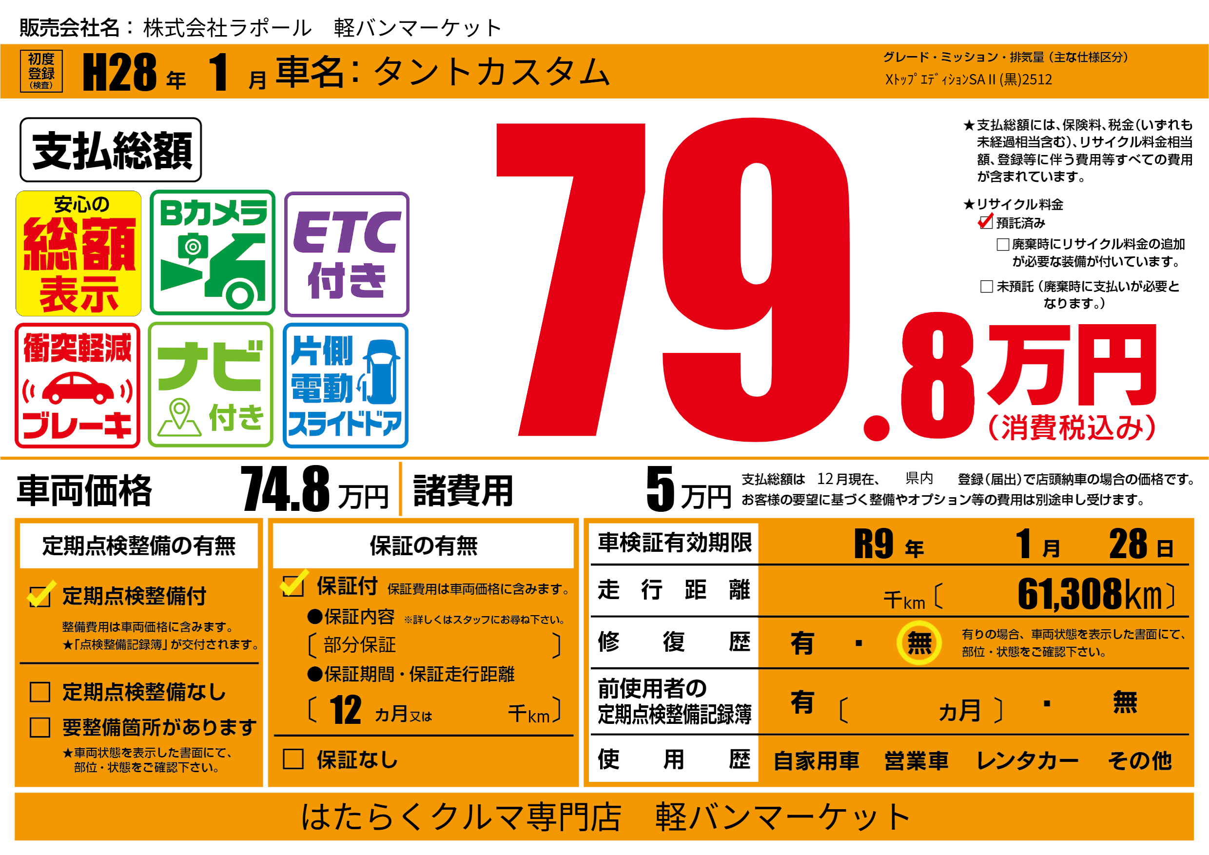 なし | 車検制限 | R9年1月28月 |