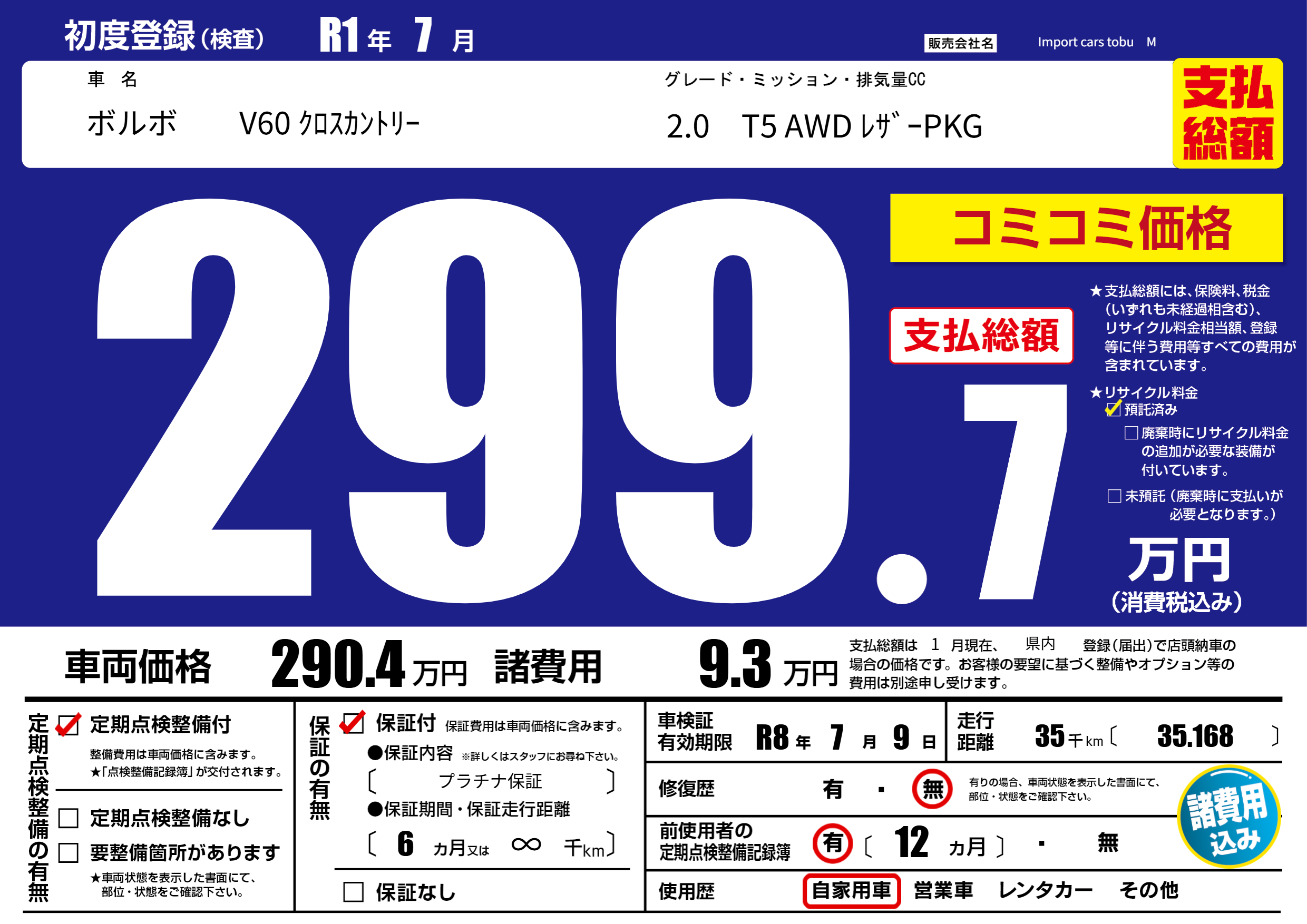 保証付き 保証内容( プラチナ保証) 6ヶ月または(∞)千kmまで |
