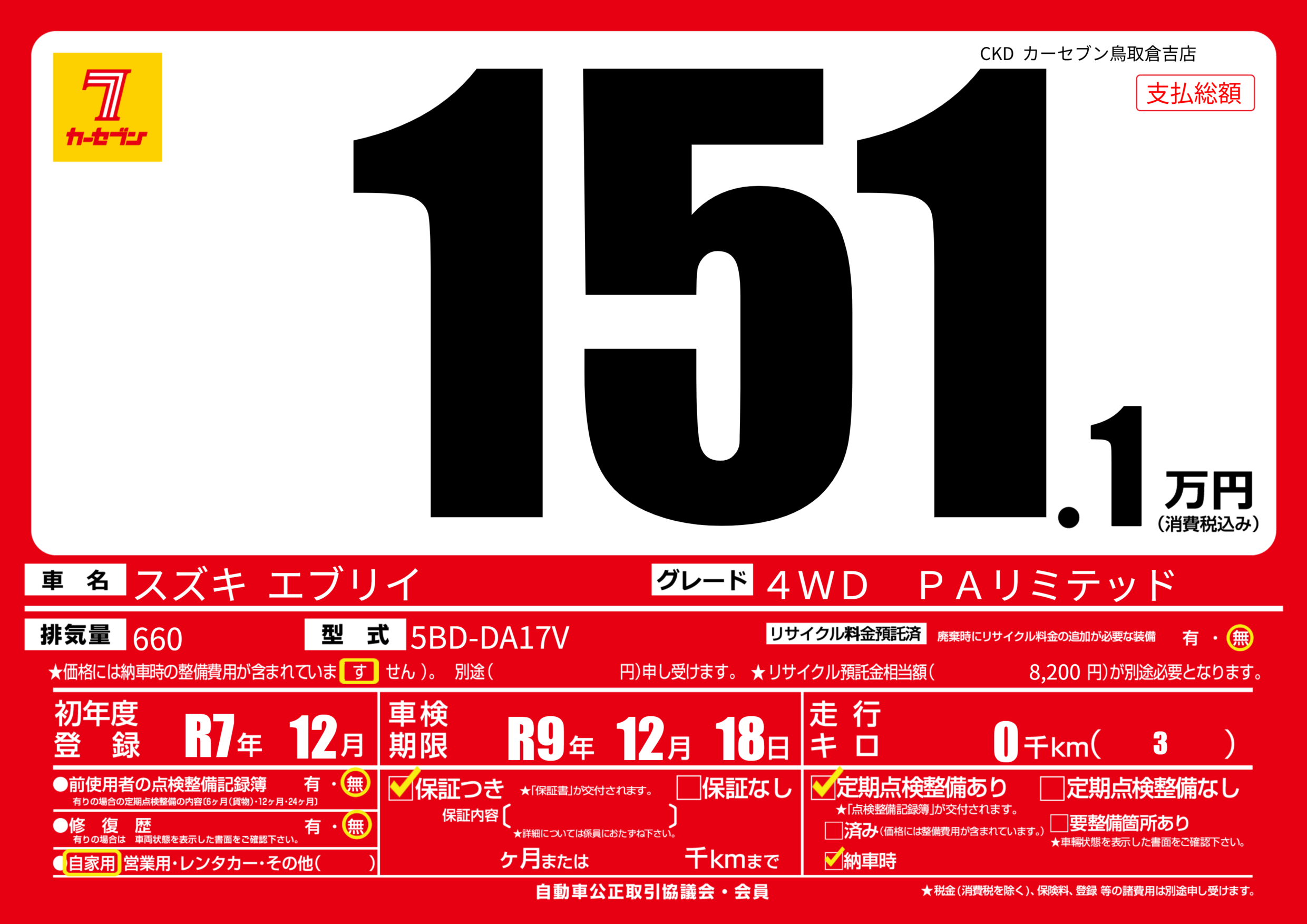 | 初年度登録 | R7年12月 | ||