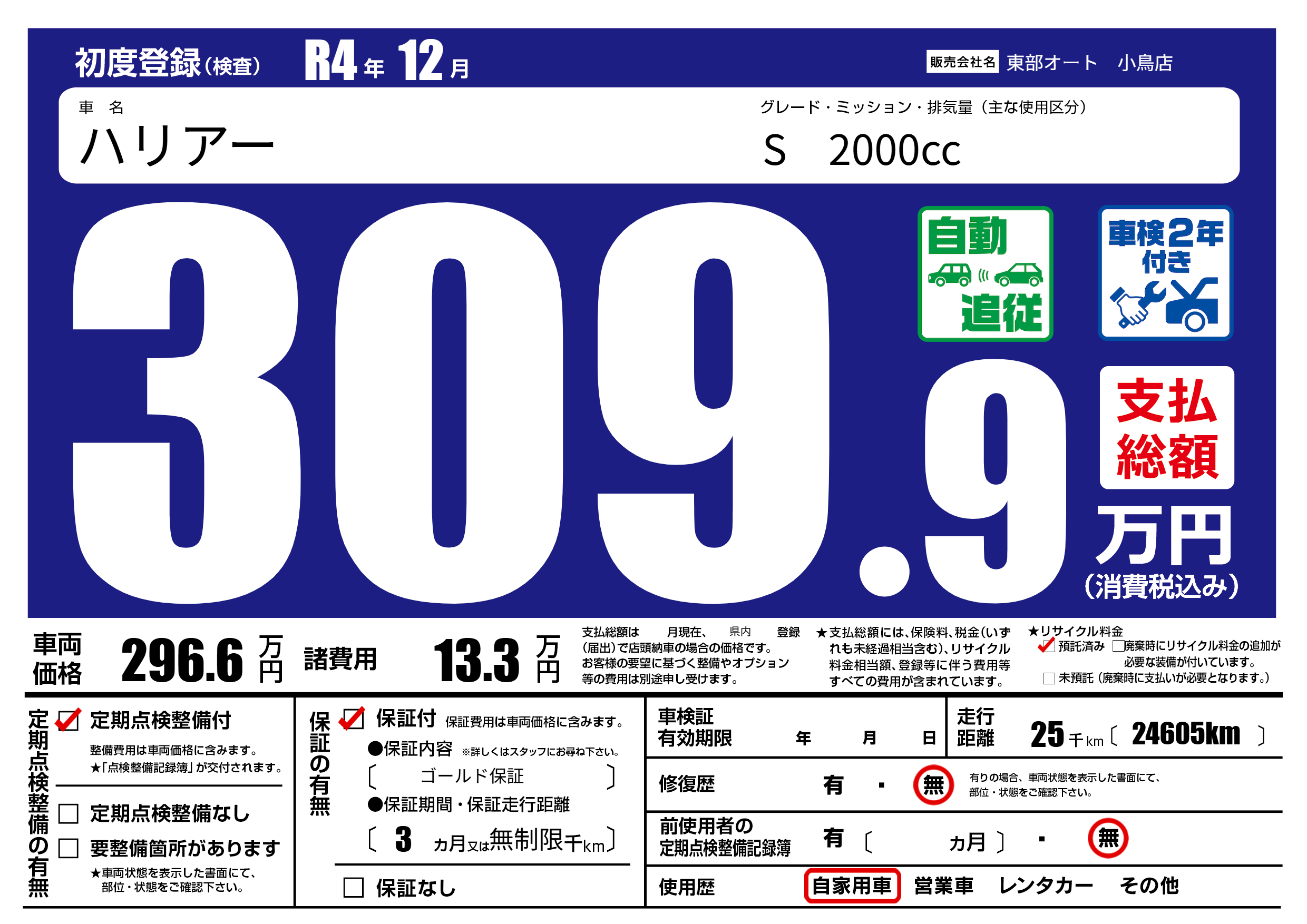 保証内容(  ゴールド保証) 3ヶ月または無制限千km
