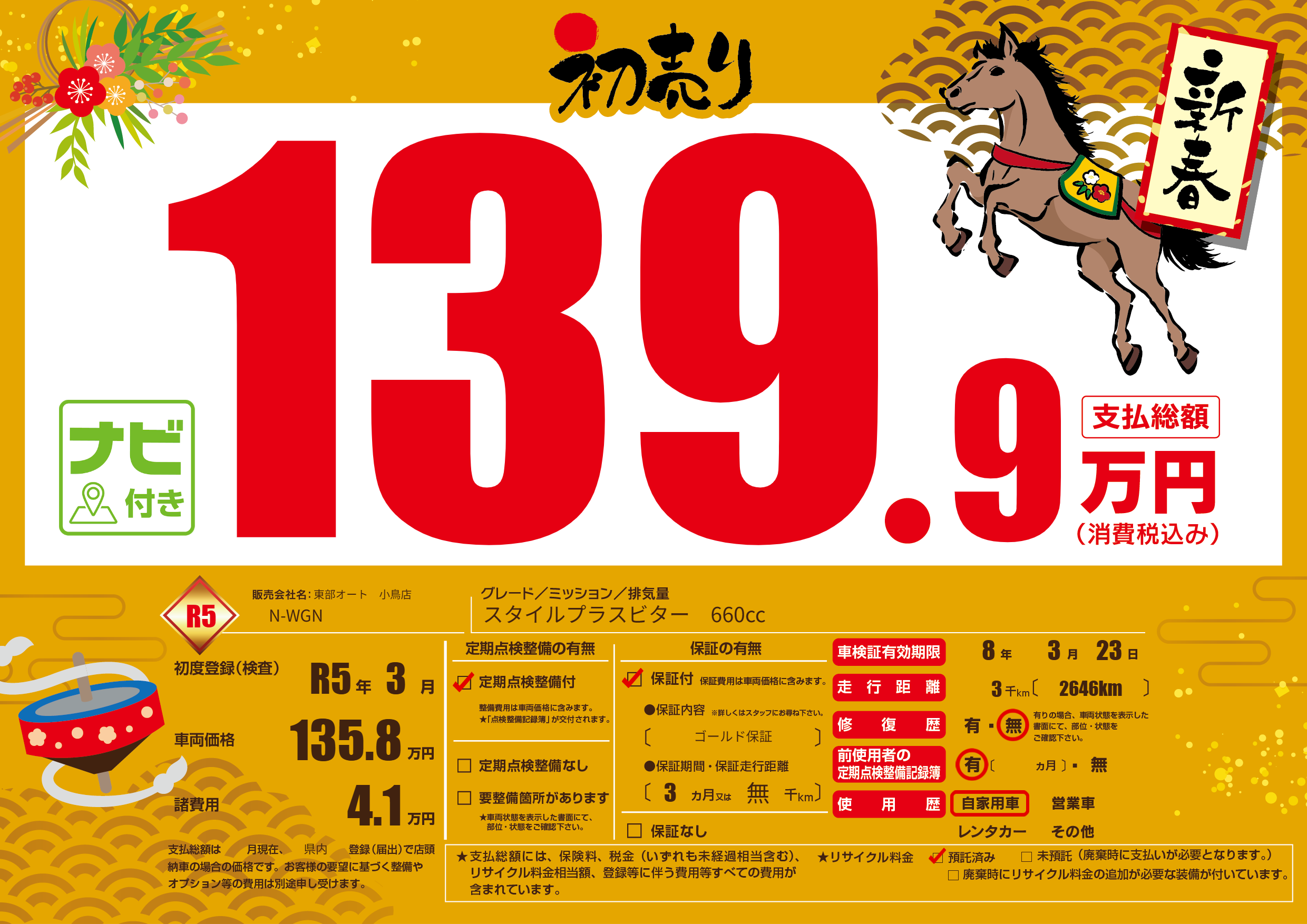 | 初年度登録 | R5年3月 | ||
